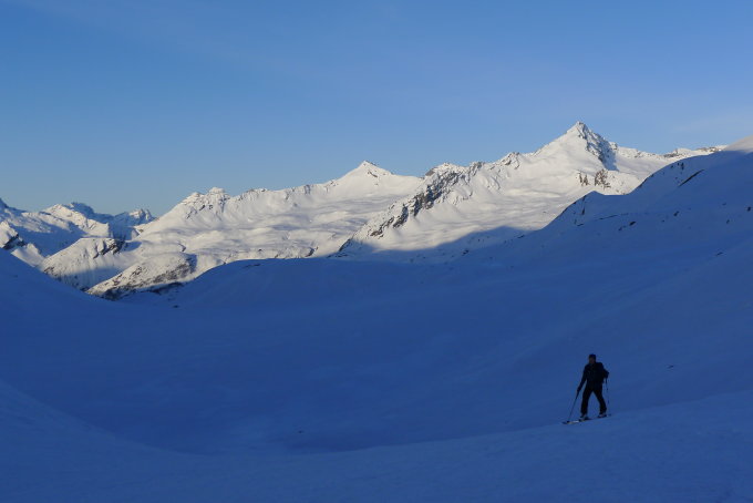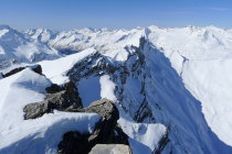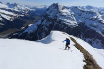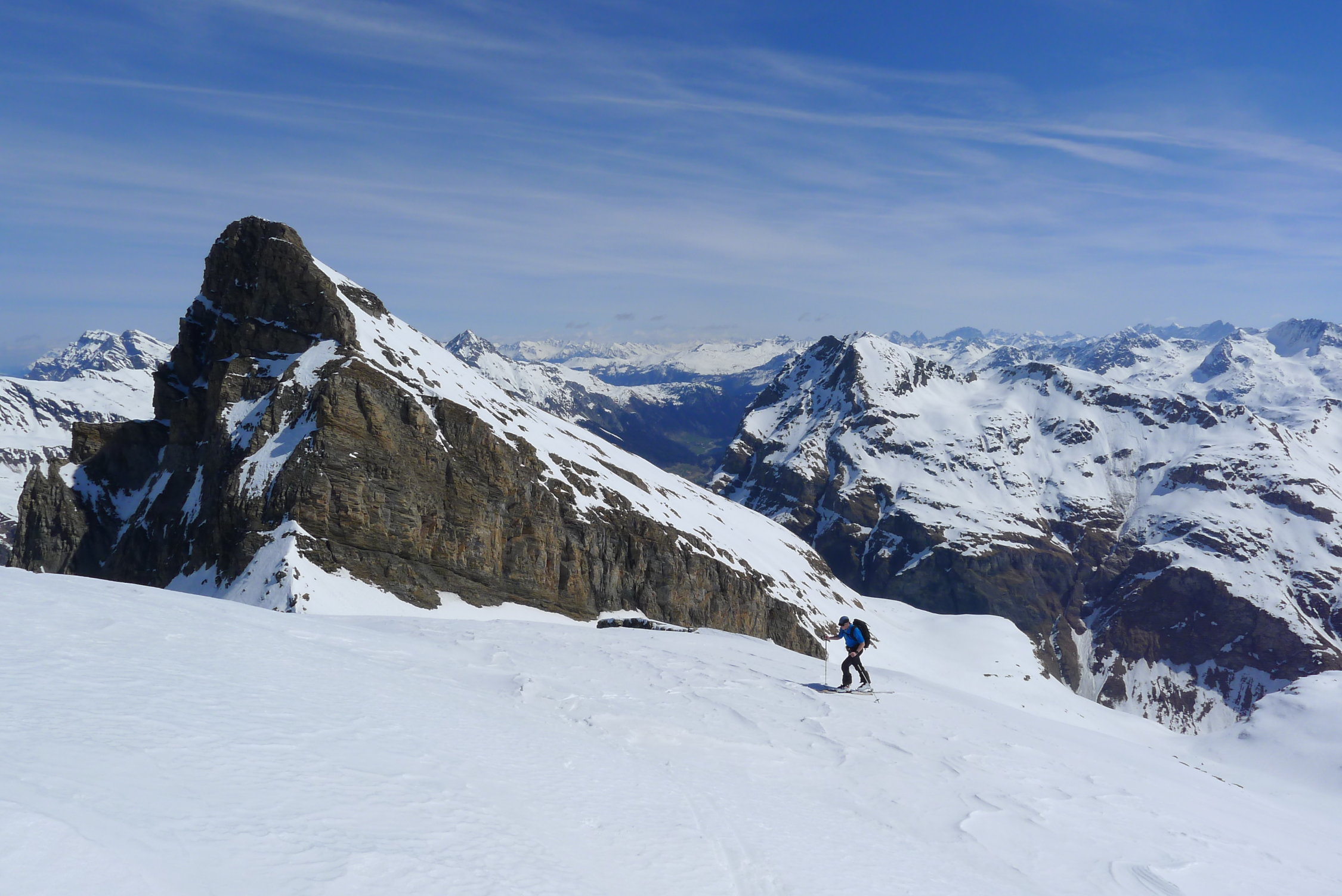 Traum-Firnverhältnisse, von A - Z. Sind um 6 Uhr in San Bernardino gestartet und waren um 10.30 auf dem Gipfel, um 11 Uhr Abfahrt über die Gipfelflanke. Später sollte diese nicht mehr befahren werden. Nach dem Start in San Bernardino sind einige kurze, apere Stellen zu überwinden. In der Gipfelflanke sind bereits einige Fischmäuler vorhanden.