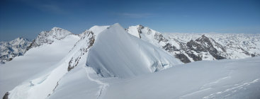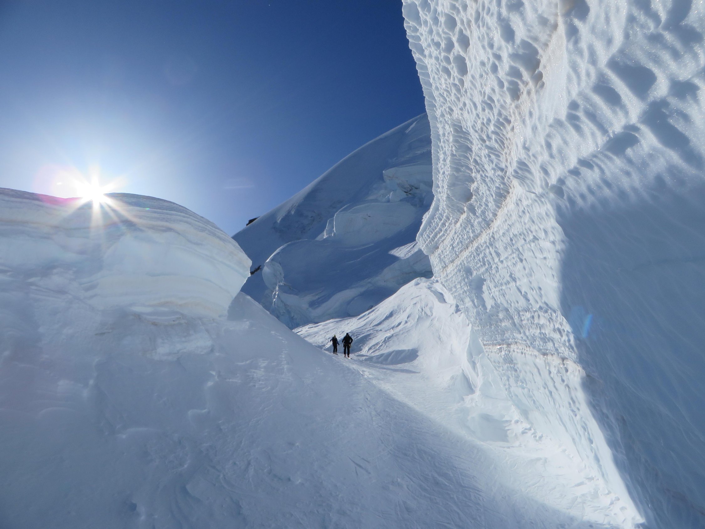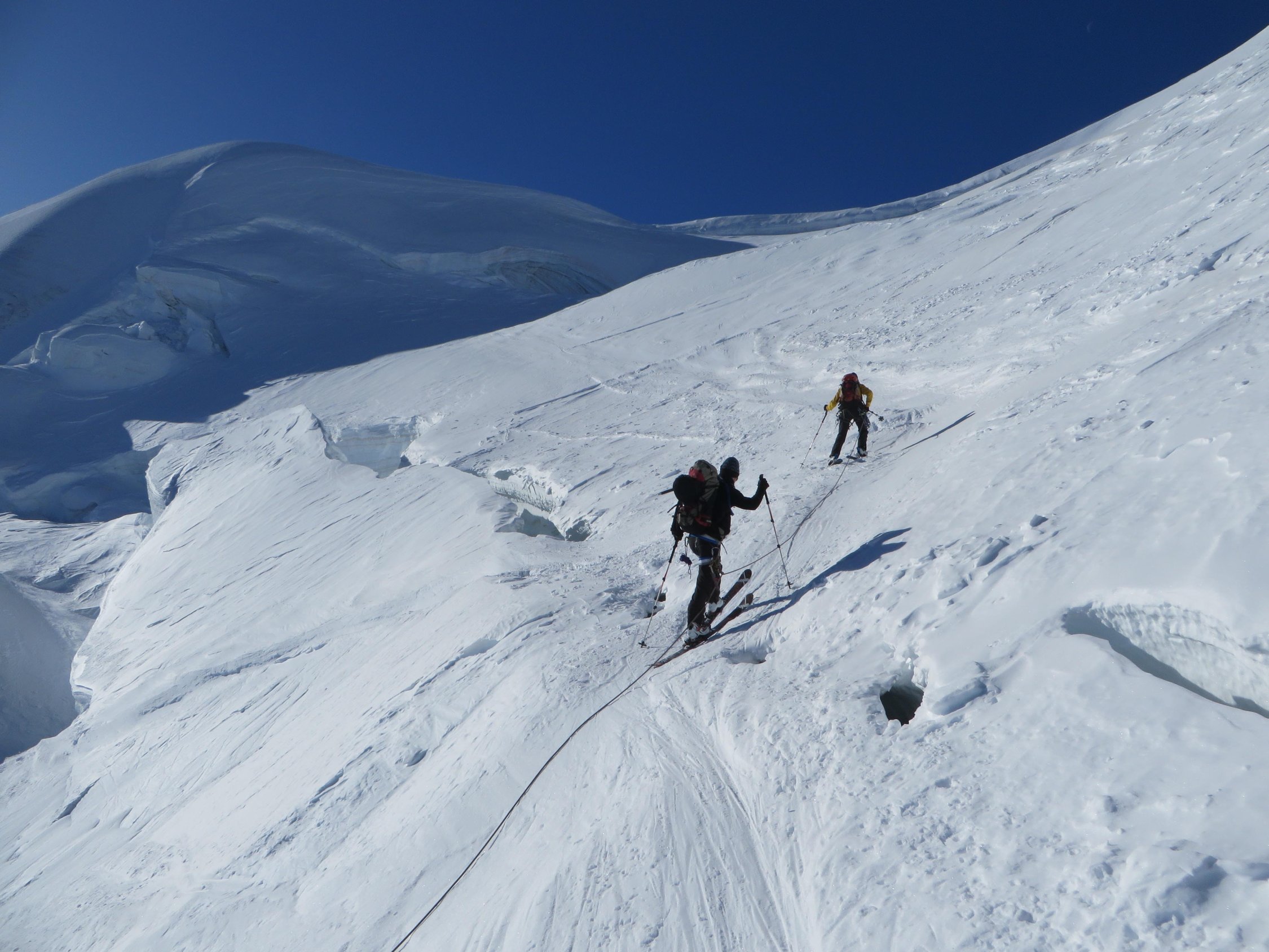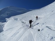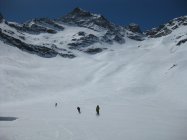 Sehr gute Schneeverhältnisse. Spaltenbrücken stellenweise etwas geringe Dicke, v.a. im 2 Gletscherbruch. Einige Brücken werden keine Woche mehr halten.
