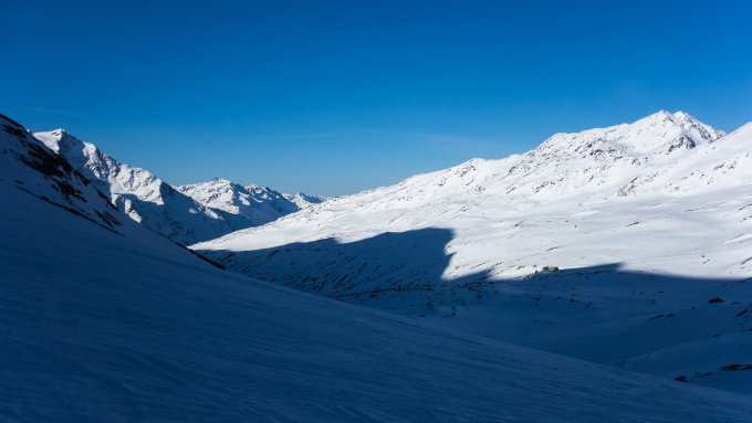 Perfekte Frühlingsverhältnisse. Wolkenlos und windstill, mild. Schnee von Pulver über windbearbeiteten Hartschnee. Es hat schon lange nicht mehr geschneit in der Gegend. Zum Teil pistenähnliche Verhältnisse. Ab Schaubachhütte (Bergstation der Bergbahn Sulden) traumhafter Sulzschnee auf der Piste ins Tal.