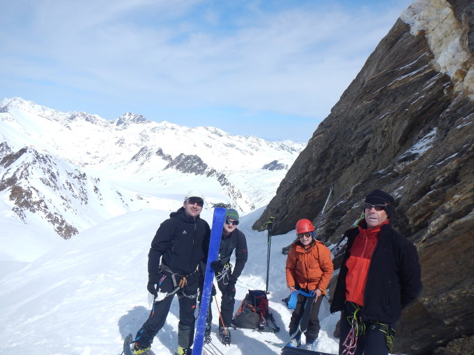 Gletscher problemlos, keine offenen Spalten. Gipfelaufbau mit Steigeisen, fast eisfrei im Klettersteig, vor dem Gipfel kurzer problemloser Firngrat. Schöne Abfahrt über Langferner auf rechter Seite, also nicht wie meist beschrieben auf der linken Seite zum Annakogel hin. Spalten alle bestens bedeckt.