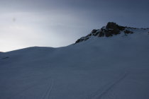 Bei der Abfahrt war der Gipfelhang noch sehr hart.