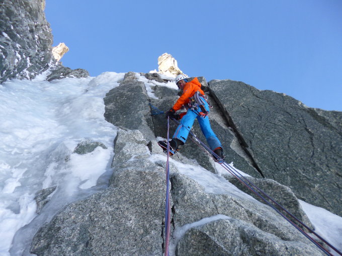 Die Verhältnise sind aktuell ausgezeichnet. Trotz der angenehmen Temperaturen war in den letzten Tagen kein Steinschlag zu verzeichnen. Wir haben zudem am Triangle die Contamine-Mazeaud und an der Tour Ronde die klass. N-Wand Führe begangen. Beide weisen ebenfalls sehr gute Verhältnisse auf.