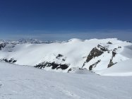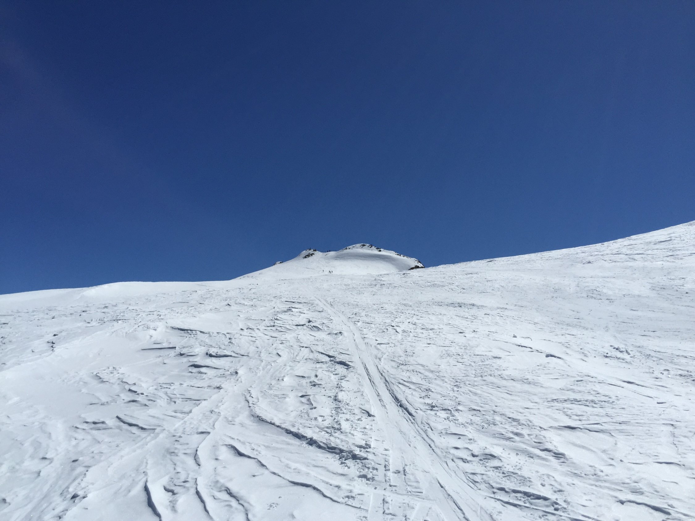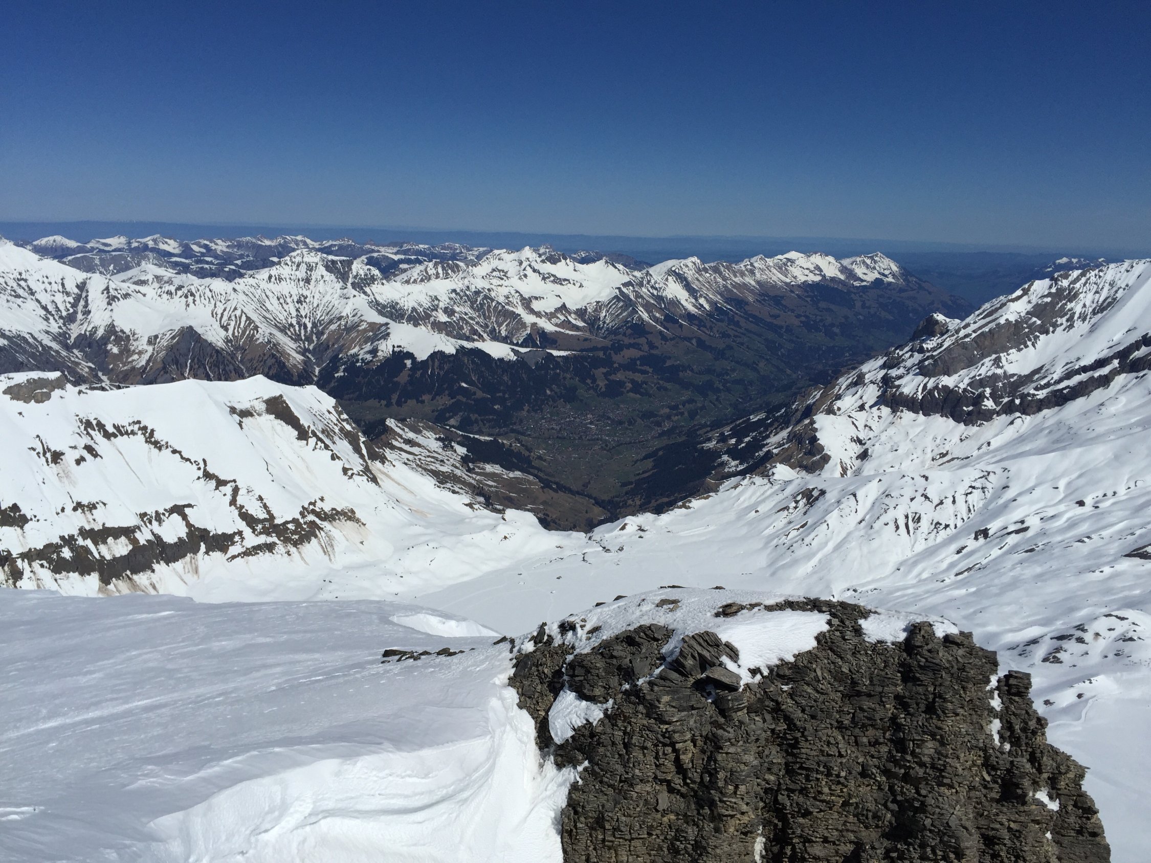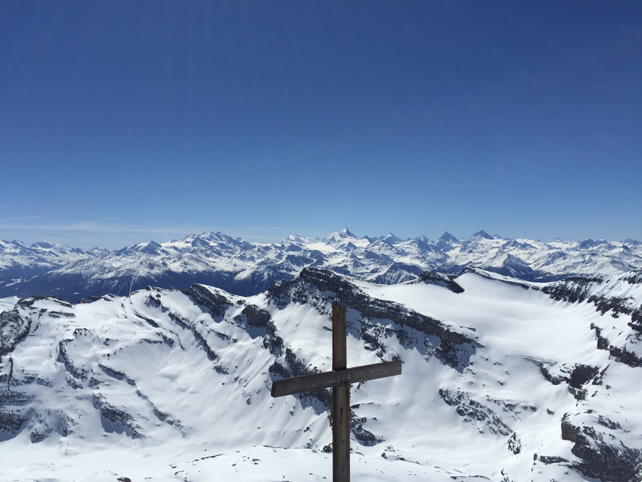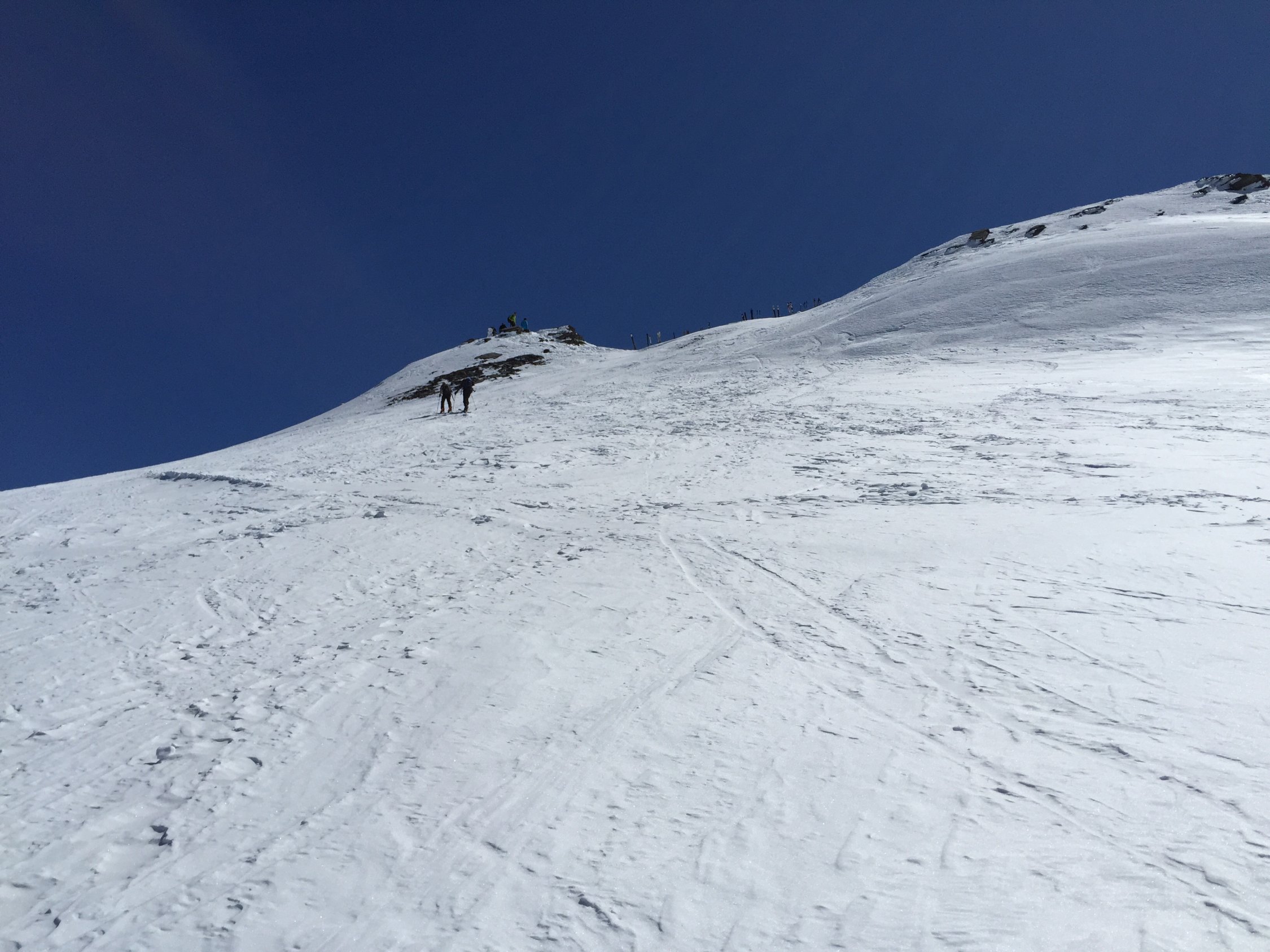 Heute herrschten sehr gute Tourenverhältnisse, wunderbares Wetter und im Aufstieg sehr gute Schneeverhältnisse. Der Aufstieg zum Wildstrubel hat momentan zwei heikle Stellen: Einmal die Querung am Frühstücksplatz, allen bekannt, die war heute sehr breit, aber auch abschüssig und nicht einfach zu fellen. (Selber bin ich zu Fuss rüber). Danach kommt gleich noch die Traverse über dem Ammertentäli, die ist nicht zu vernachlässigen, da man bei einem Sturz sehr weit gleiten würde. Harscheisen sind da absolut zwingend, jedenfalls für mich. Ansonsten ist der Aufstieg nicht schwierig, aber der Gipfel will verdient sein. Es waren heute recht viele Leute am Berg, und die Abstände waren ziemlich gross. Wunderschöne Gipfelrast, windstill und warm, mit phantastischer Fernsicht (siehe Fotos). Ganz tolle Aussichtsbühne. Dann die Abfahrt: Gipfel bis unter den Frühstücksplatz windbearbeitet und hart-griffig, sehr gut zu fahren. Dann der Mittelteil: Nicht tragende Kruste, nicht umgewandelter Firn, naja, ging (auch in die Oberschenkel :-) ). Zum Schluss dann schöner Firn und Sulz, prima.