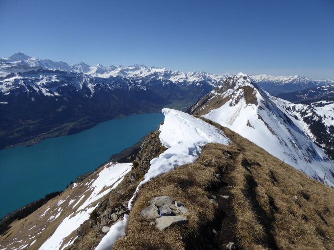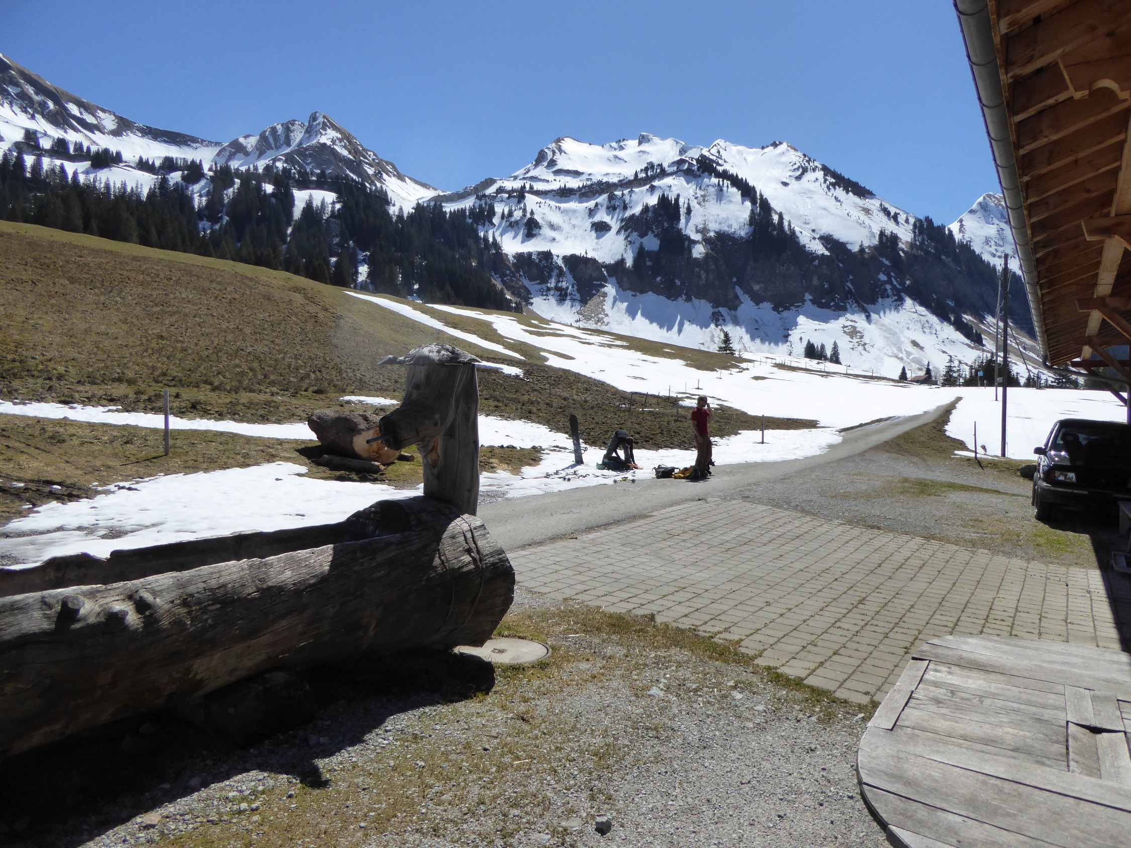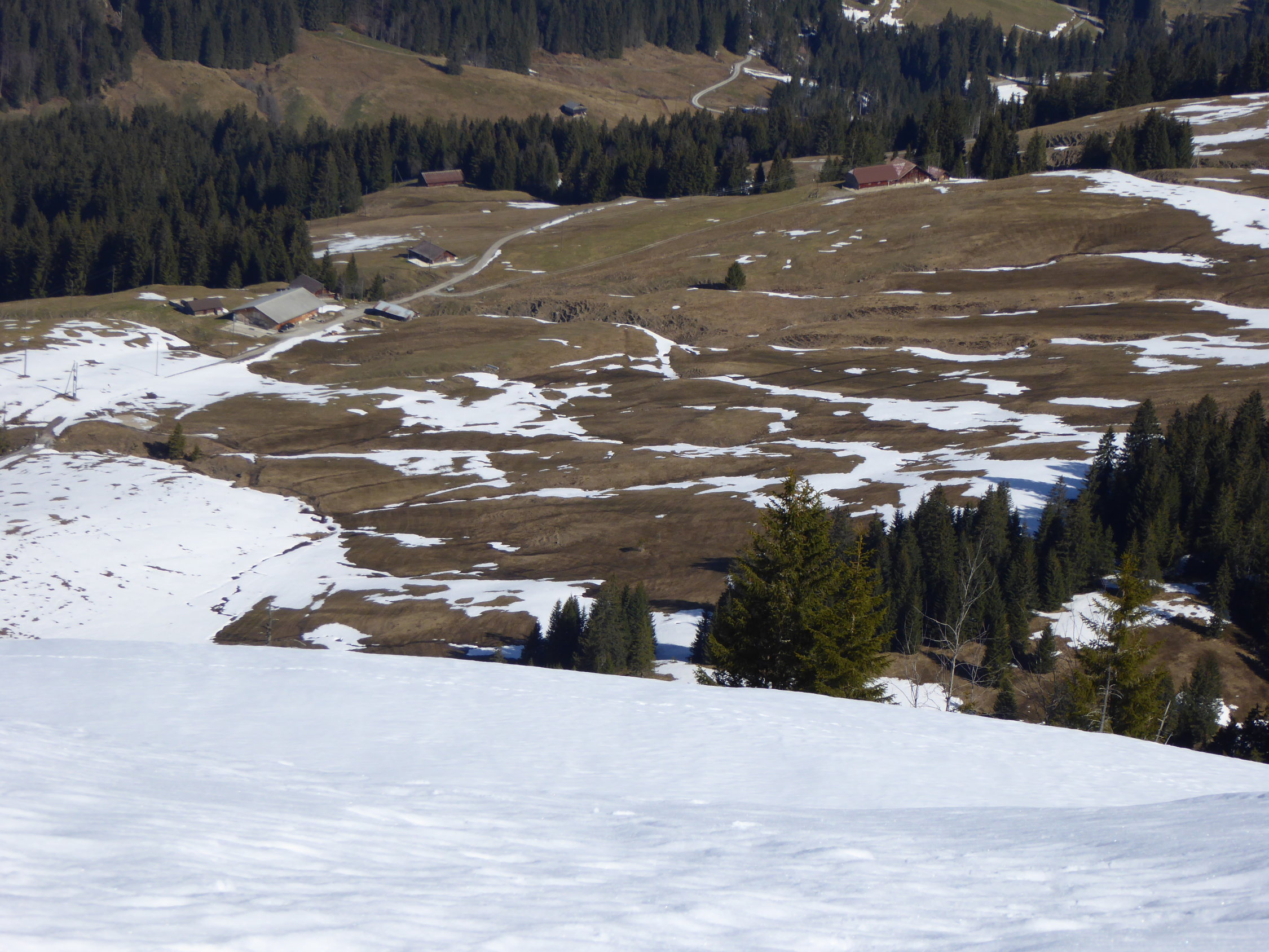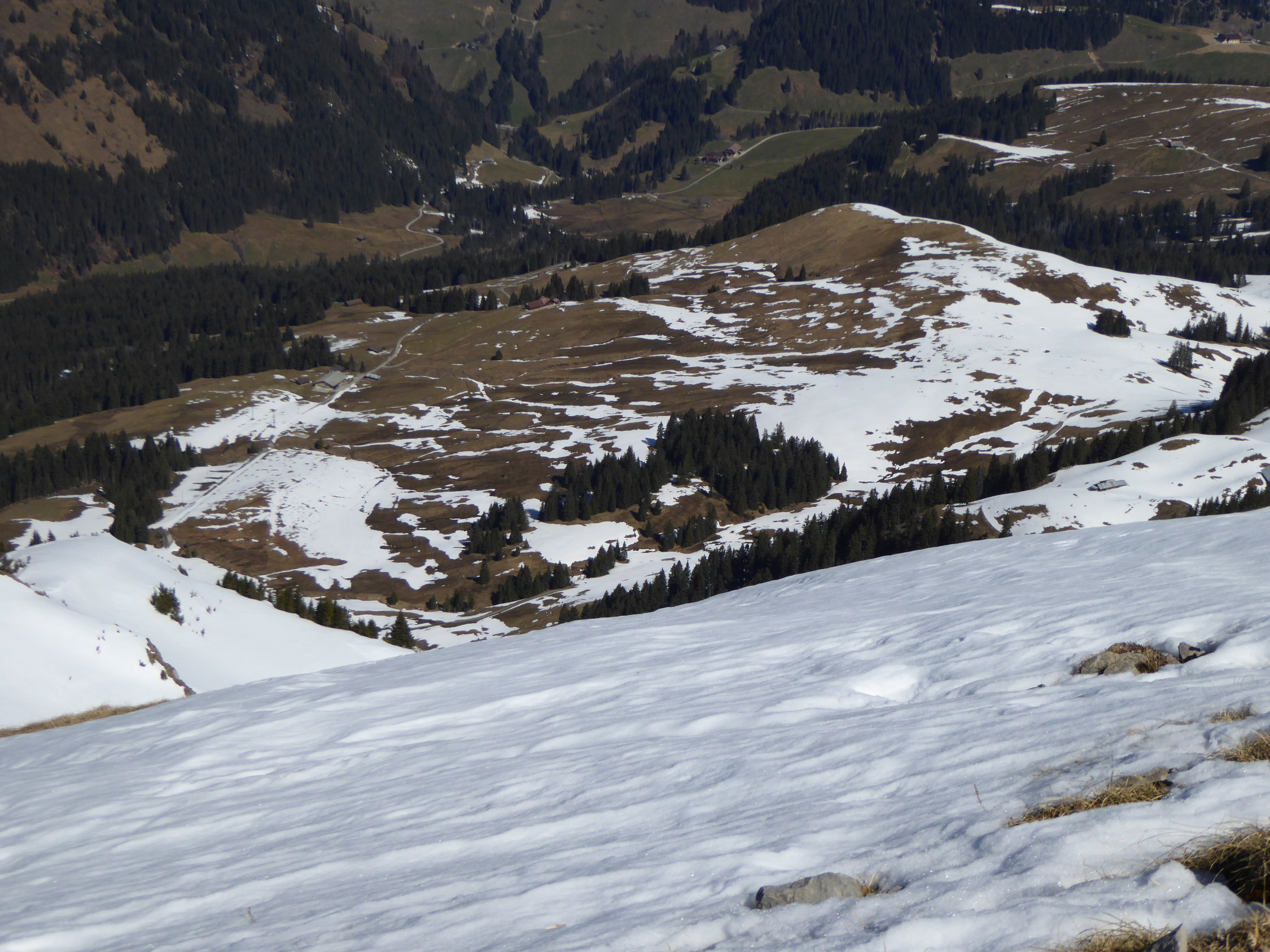 Start ab Parkplatz um 7.15 Uhr bei ca.3 grad. Schneedecke durchgehend gesetzt und gefroren. Im Aufstieg bis Mirrenegg im Wechsel auf Ski und dann wieder wandernd ca.700m. Oberhalb Mirrenegg durchgehende Schneedecke. Vom Gipfel aus merkten wir uns die Abfahrtsroute und konnten auf den letzten Schneeflecken bis unt. Mirrenegg P 1380m.ü.M abfahren und dann haben wir bis zum Parkplatz immer wieder die letzten Schneeflecken ausgenutzt. So konnten wir wenig wandernd auf gut fahrbarem weichem Schnee ins Tal gleiten. Start auf dem Westgipfel ca. 12.30 Uhr. leicht angesulzt oder hart griffig aber nirgends gedeckelt. Waren ganz alleine im Gebiet, auf dem Gipfel fast sommerlich warm und windstill.