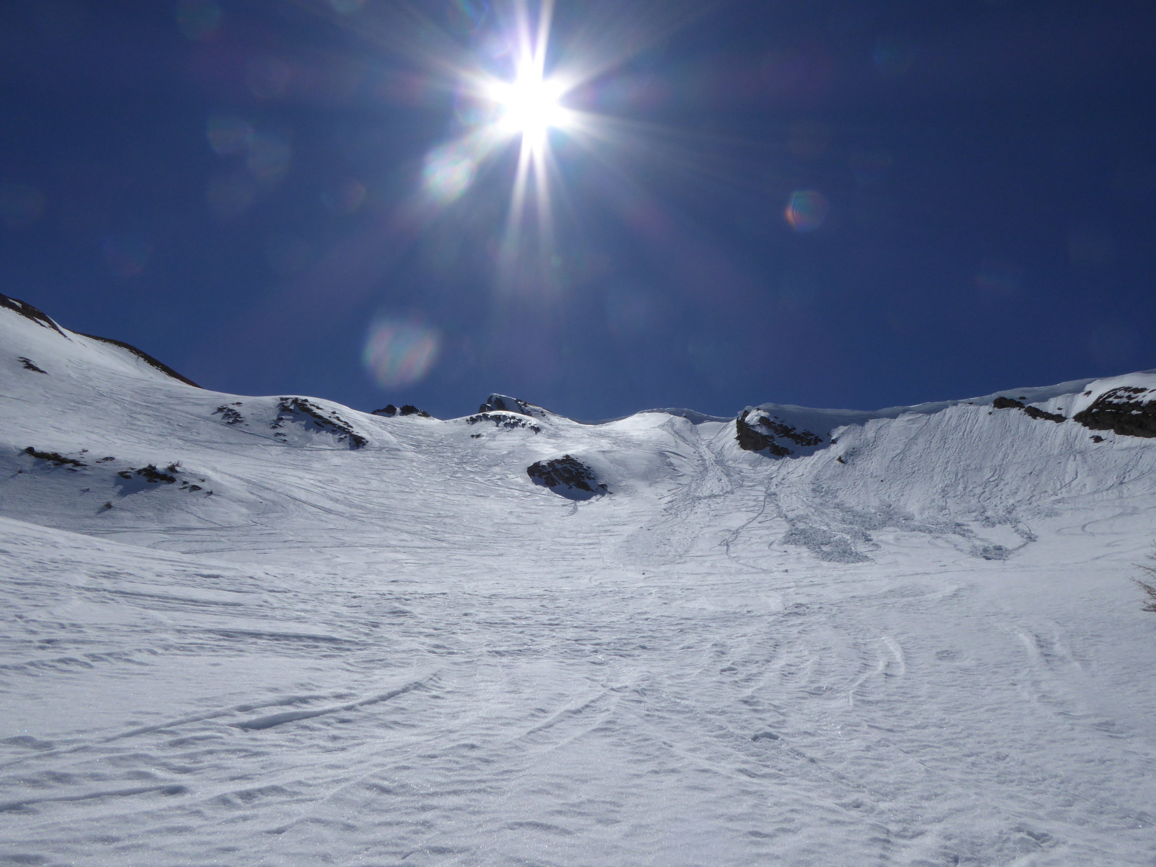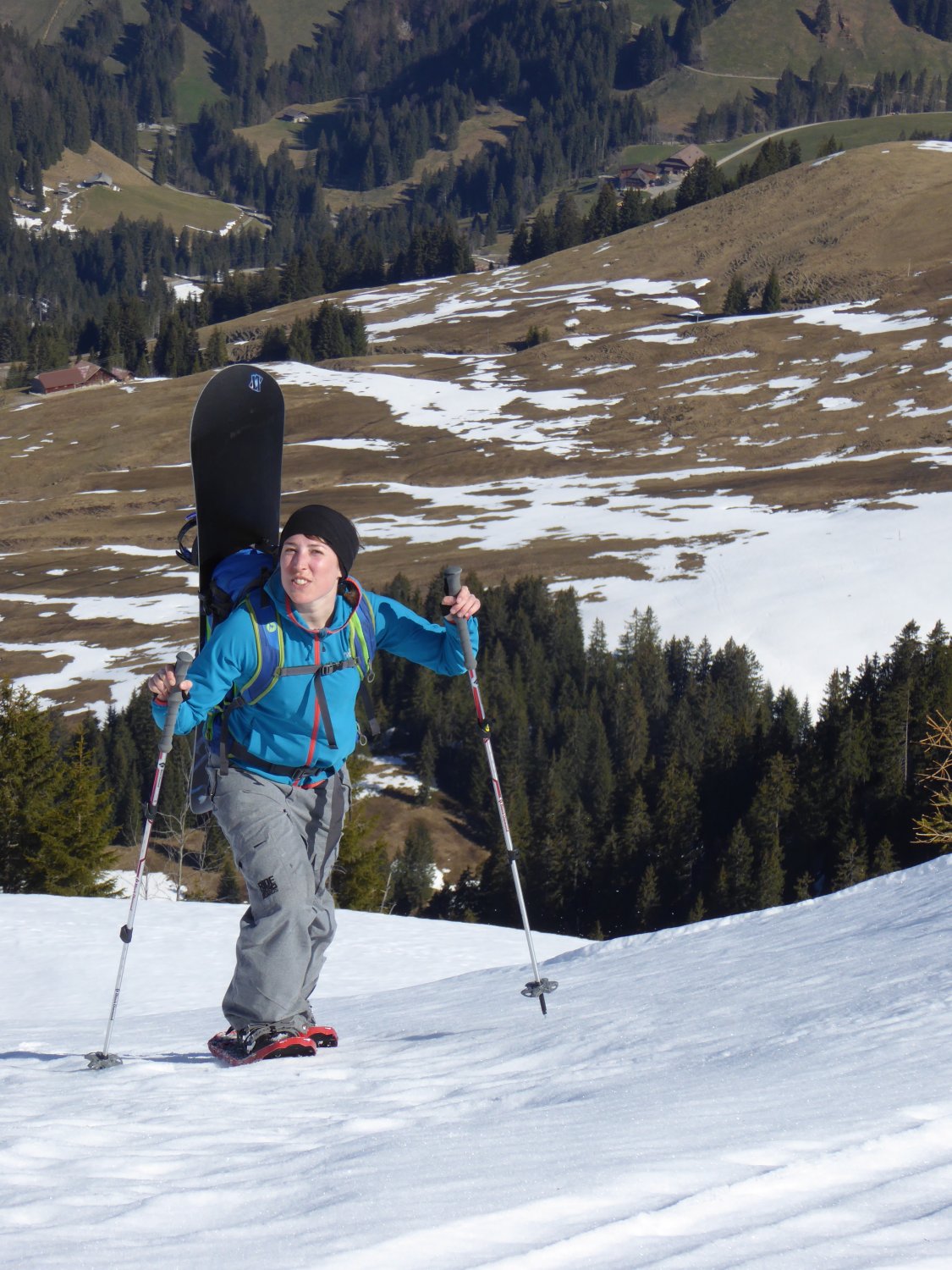 Im Gipfelhang sind Harscheisen von Vorteil.
