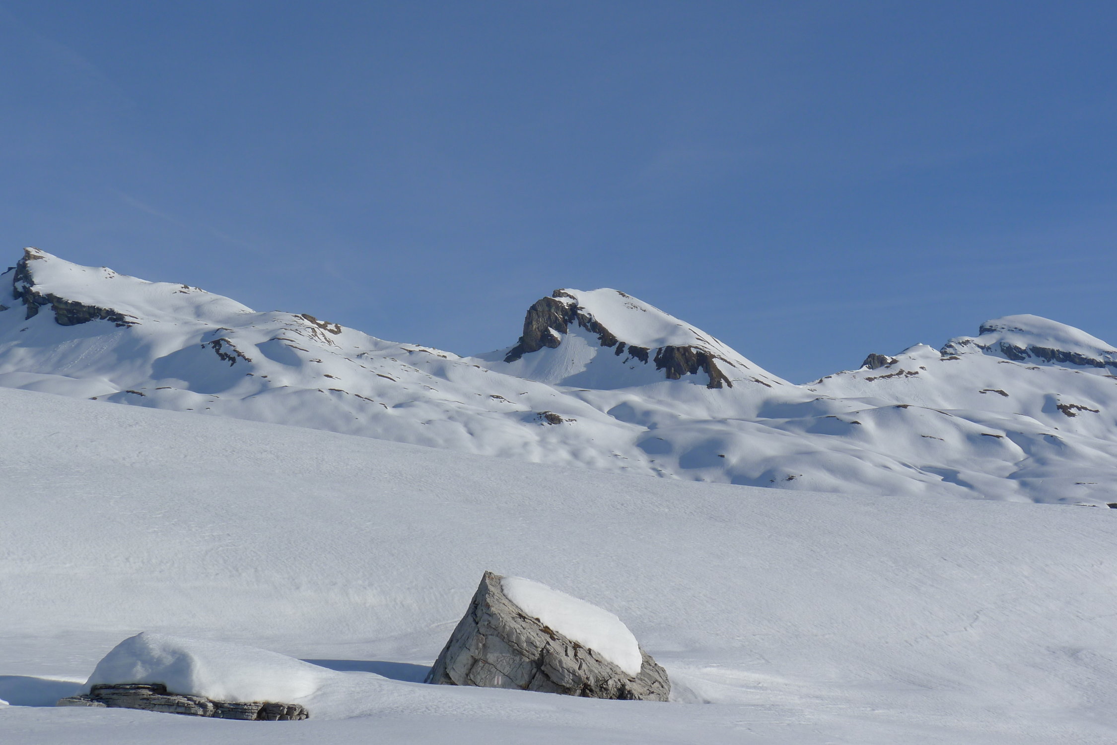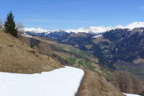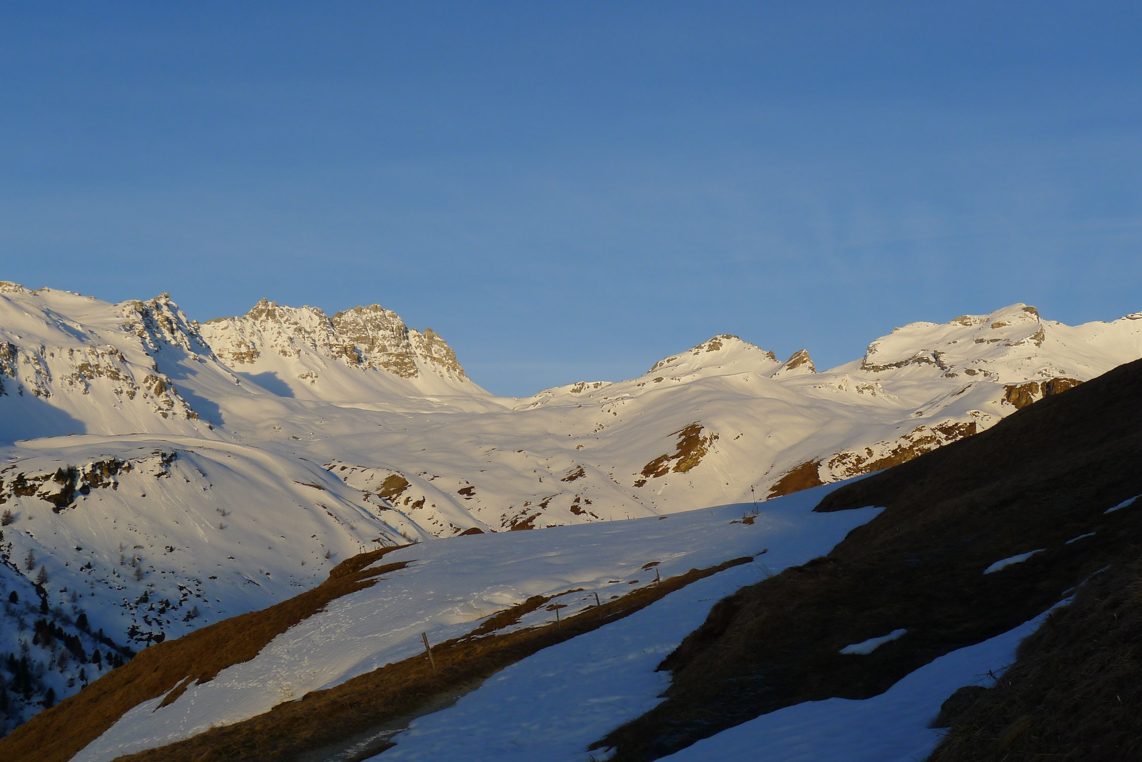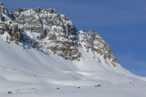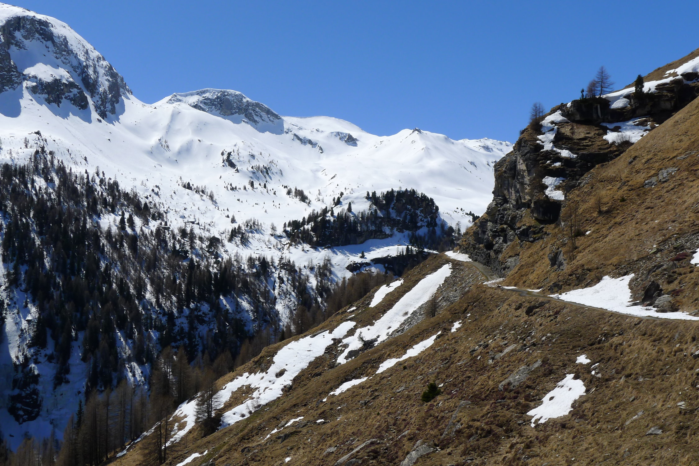 Bei diesen frühlingshaften Temperaturen wird es mit dem Schnee schnell mal knapp, insbesondere im Zustieg zur Brücke P.1914. Beim Start in Wergenstein müssen die Ski ca.20 Min. getragen werden. (Gilt auch für Piz Beverin, Bruschghorn etc.)