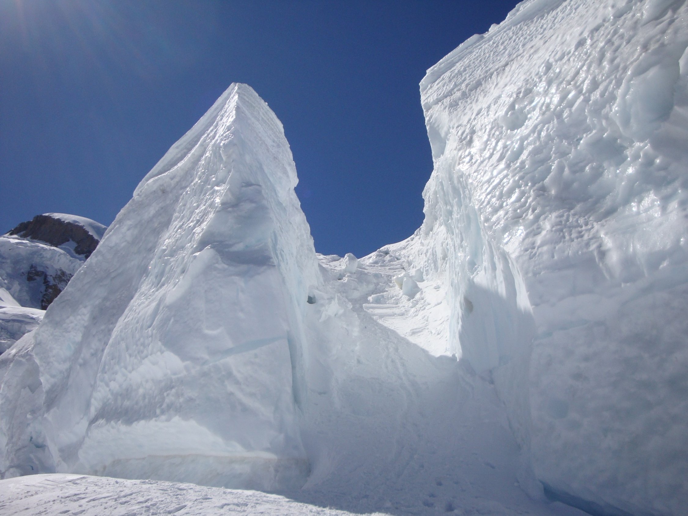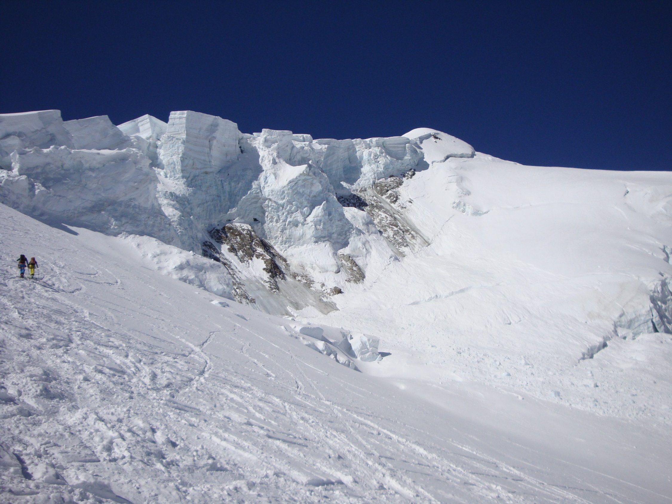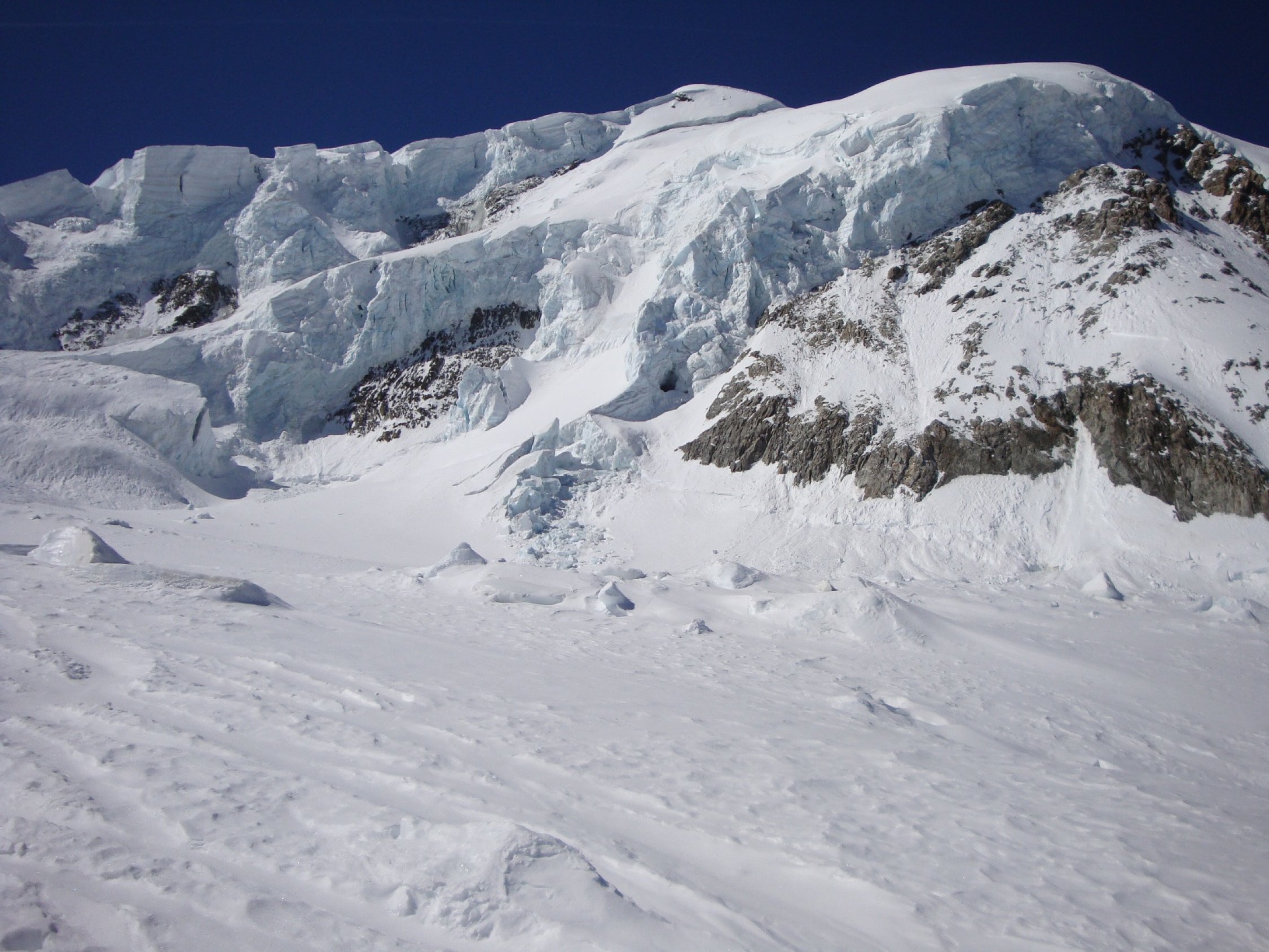 Am 14.April Seracabbruch mit Eislawine auf's Petit Plateau hinab bis über die Aufstiegsspur