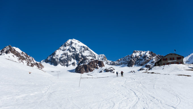 Von der Branca-Hütte zur Pizzinihütte. Von hier Rundtour über den Passo di Zebru nord zum Col Pale Rosse und Abfahrt zur Pizzinihütte