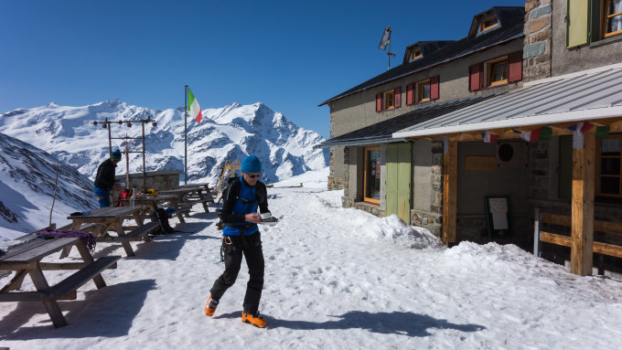Teil des Miniera-Gletschers bis zum Col Pale Rosse (3379m). Nun folgt eine wunderschöne, lange Abfahrt über weite offene Hänge hinunter zur Pizzinihütte.