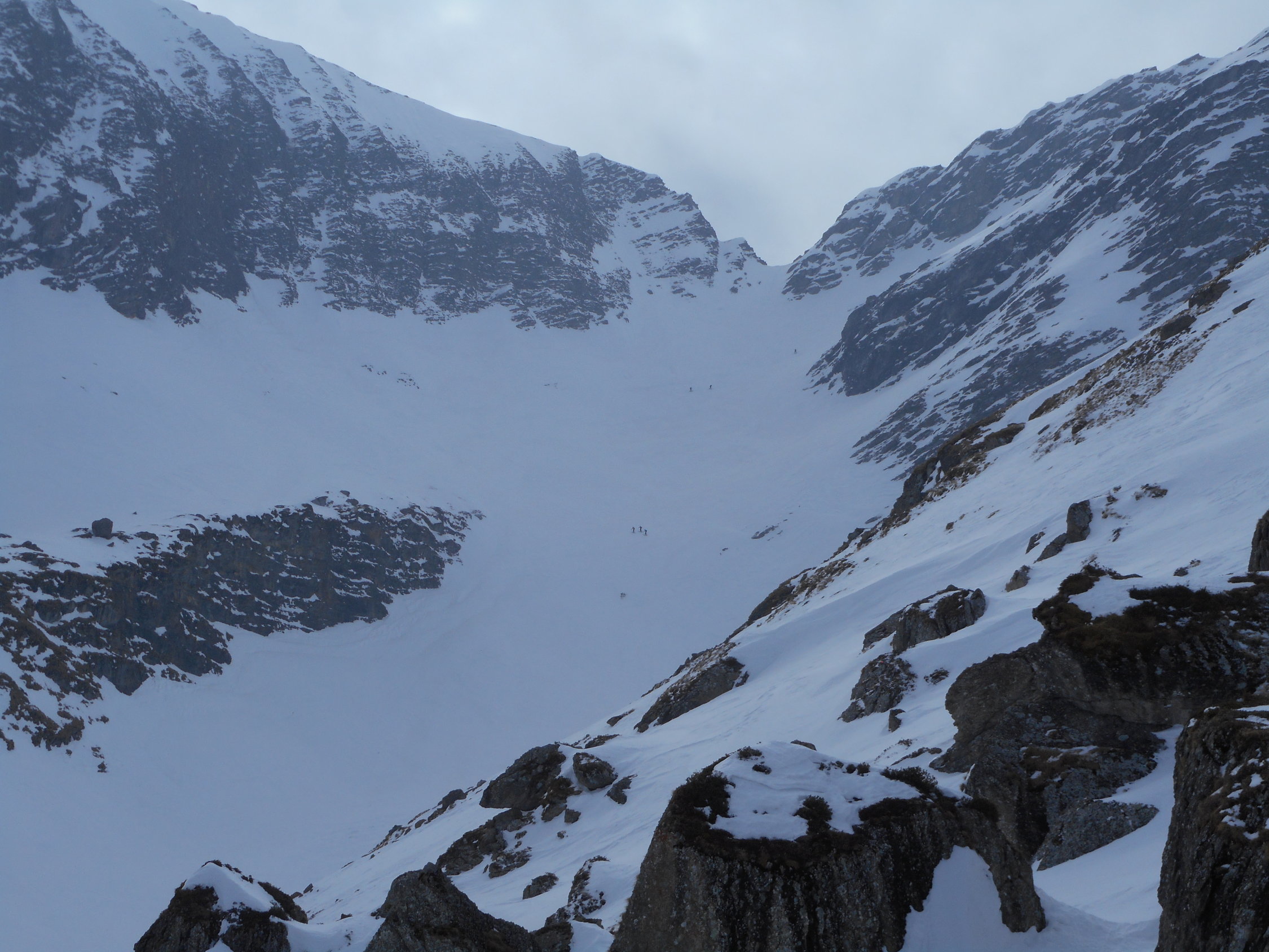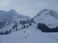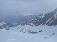 Abfahrt: Bis nach L`Arsat 1400m schönes Sulzfahren. Vom Wetter her konnte man gut beobachten, wie eine Störung von Westen heranzieht.