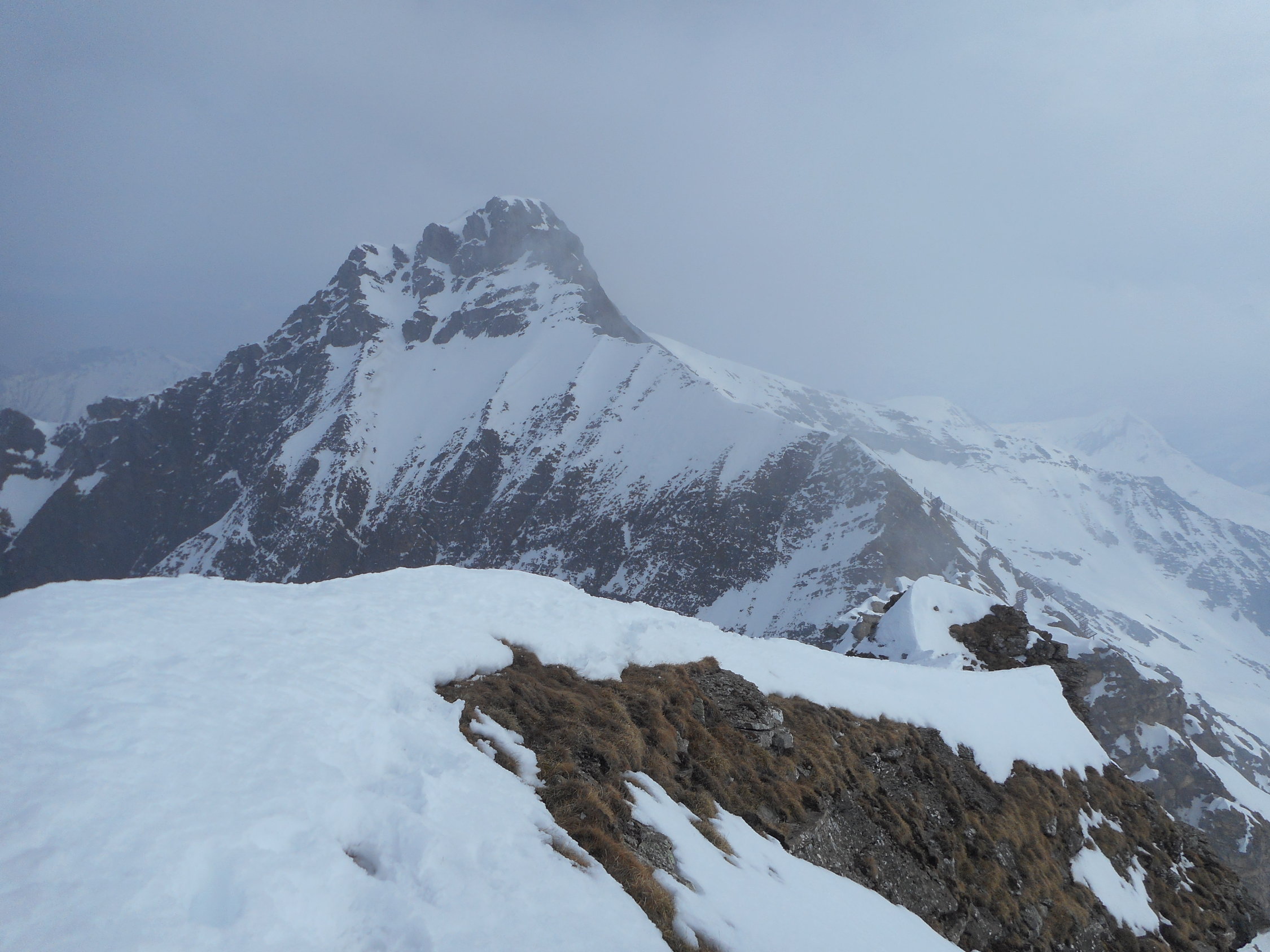 Wir sind den Gipfelgrat zu Fuss gegangen. Auf dem Nordost-Grat schönen Trittschnee vorgefunden.