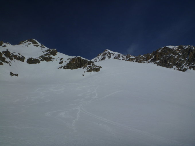 Sehr gute Verhältnisse auf der ganzen Strecke. Auch die heikle Querung geht momentan sehr gut. Harscheisen sind von Vorteil bis zum Skidepot, obschon es uns Sinnvoll schien, diese in den flächeren Teilstücken zu demontieren. Vom Skidepot bis zum Gipfel waren Steigeisen und Pickel unerlässlich. Einige Seilschaften haben auch angeseilt. Vom der Lücke in leichter Kletterei bis zum Gipfel.