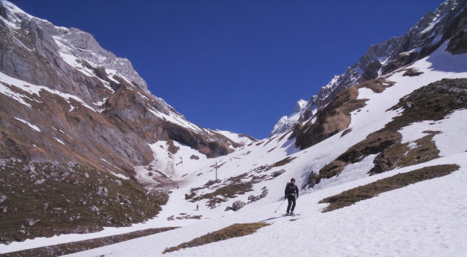 Beste Verhältnisse. Tragende Schneedecke in der Abfahrt, wie auch im Aufstieg. Die Abfahrt geht noch bis knapp zur Thurwis.