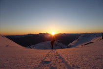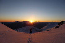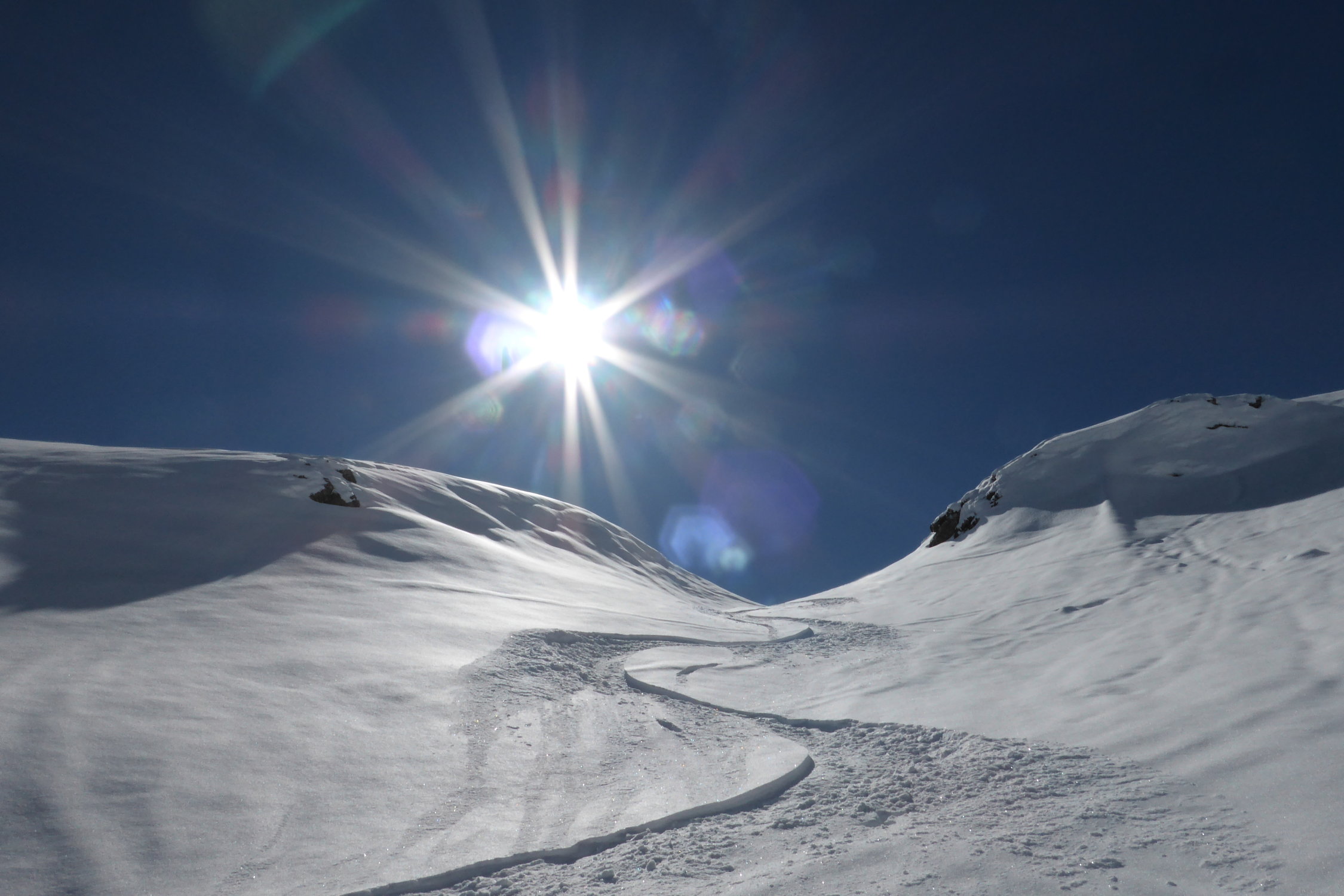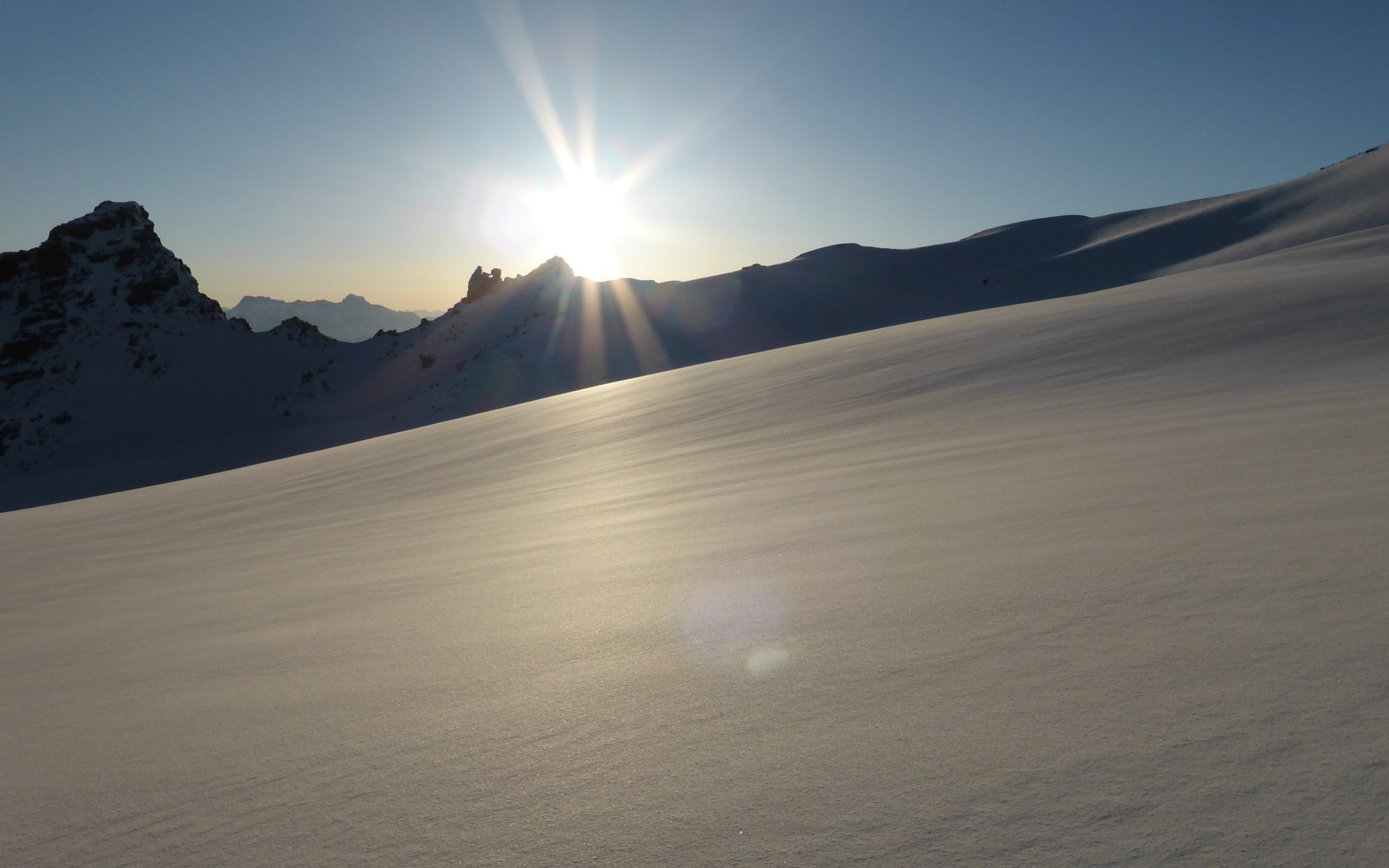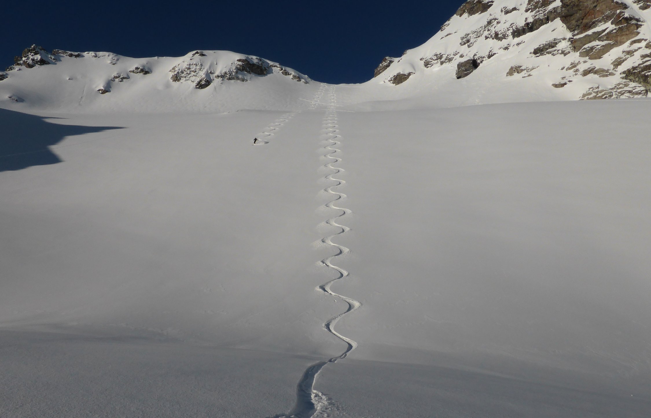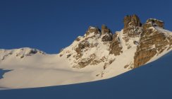 Nassschneerutsche schon ab 11.00 Uhr ab den steilen Ostflanken zur Wildseelücke