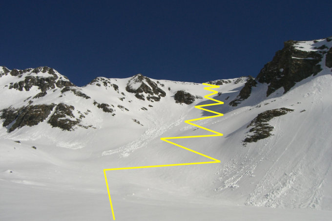 Perfekte Frühjahrverhältnisse im Walfeskar. Steilhang zur Scharte auf 2980m gut mit Harscheisen zu gehen. Ab der Scharte bis Gipfel 10cm Pulverschnee.