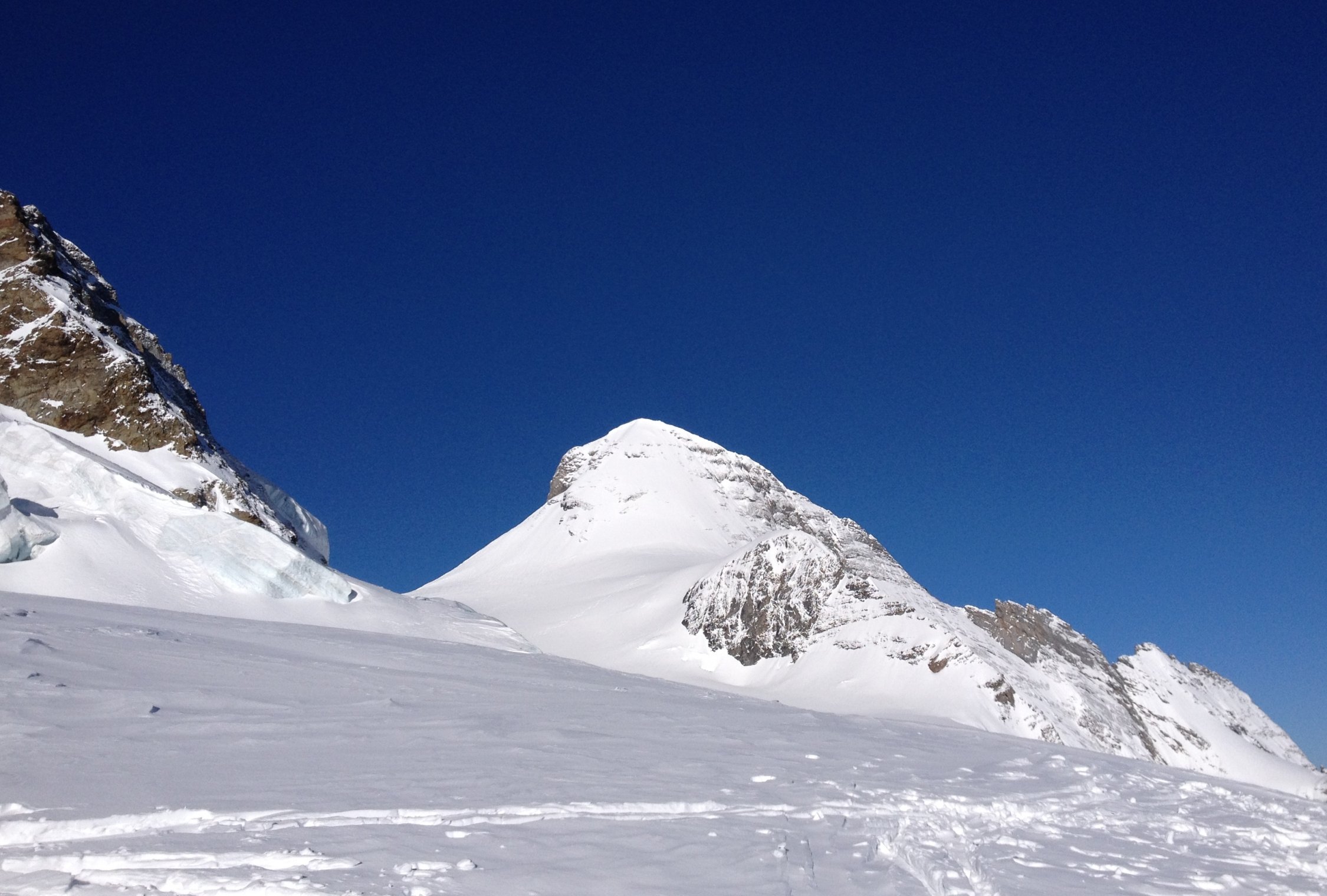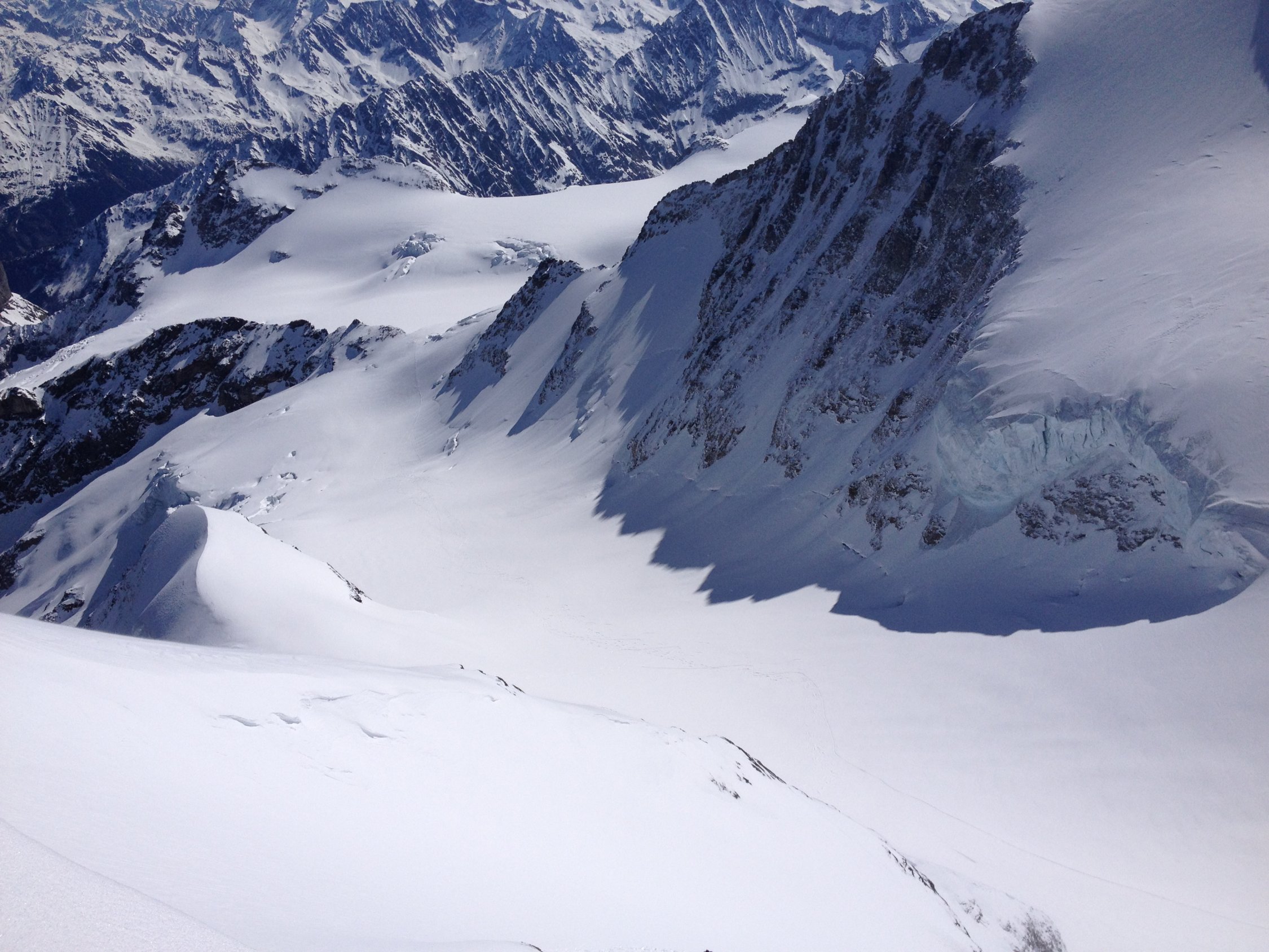 Aufstieg bis ca. Biwakhöhe mühsam, einige Lawinenkegel, glasige Spur, dann wiederum recht zerfahren, Harscheisen kein Luxux. Ab Gletscher dann ok. Couli hoch zum Gipfel viel Lockerschnee, Wühlerei wechselt sich ab mit harter Unterlage.