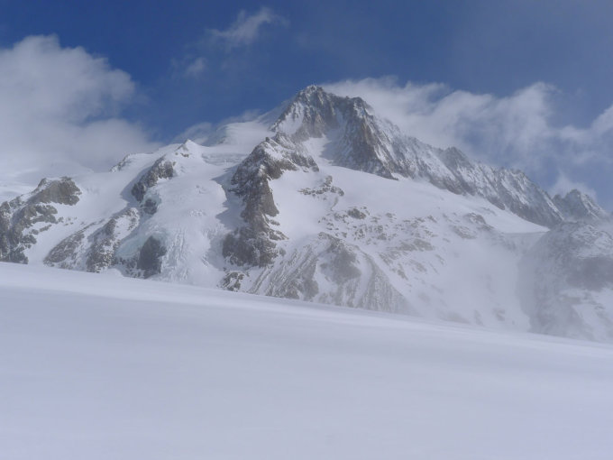 Der untere Teil bis zum Frühstücksplatz war am Morgen beim Aufstieg hart gefroren und bei der Abfahrt schön aufgesulzt - ein Genuss. Zwischen Frühstücksplatz und Hugisattel lag kompakter, windgepresster Pulverschnee, der gut fahrbar war. Das letzte Stück vom Hugisattel auf den Gipfel wies neben meist schönem Trittschnee auch einige kurze, blanke Stellen auf. Diese liessen sich jedoch gut absichern.
