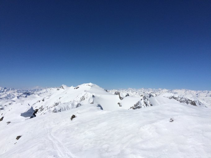 Vom Gipfel kann bis zur Greina abgefahren und über die Fuorcla Sura da Lavax wieder aufgestiegen werden.