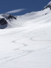 Super Verhältnisse der steile Gipfenhang mit Harscheisen problemlos.