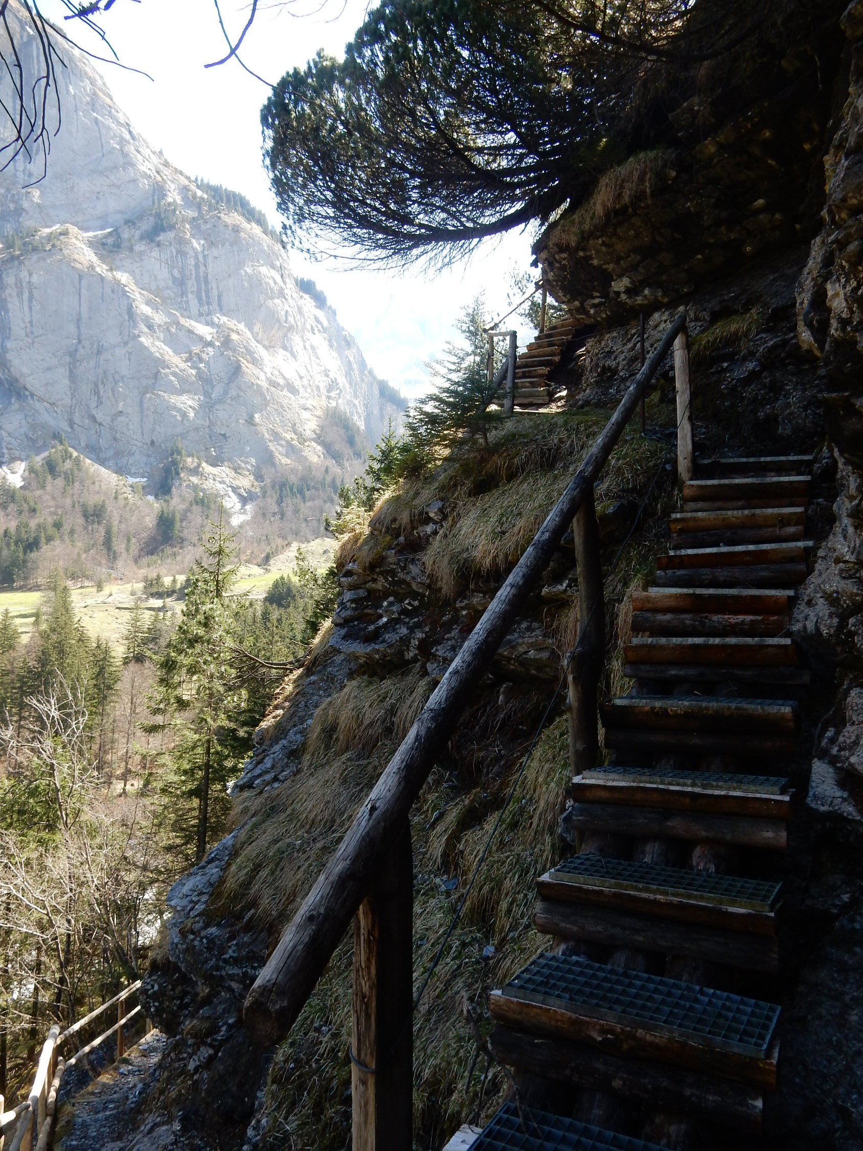 Noch ein Tipp für Ortsunkundige: Aktuell ist der Wanderpfad durch die Erlenstufe oberhalb Goldboden nur schwer zu finden. Alles plattgedrückt oder unter Lawinenschnee. Besser von der Fürenalpbahn direkt über den Bach und auf dem Weg über das Leiterli zur Alp Bödmen. Von da waagrechte Querung hinüber zum Firnälpli. Komplett schneefrei und trocken. Mit den Leitern bekommt diese megagute Tour noch ein weiteres kleines Highlight.