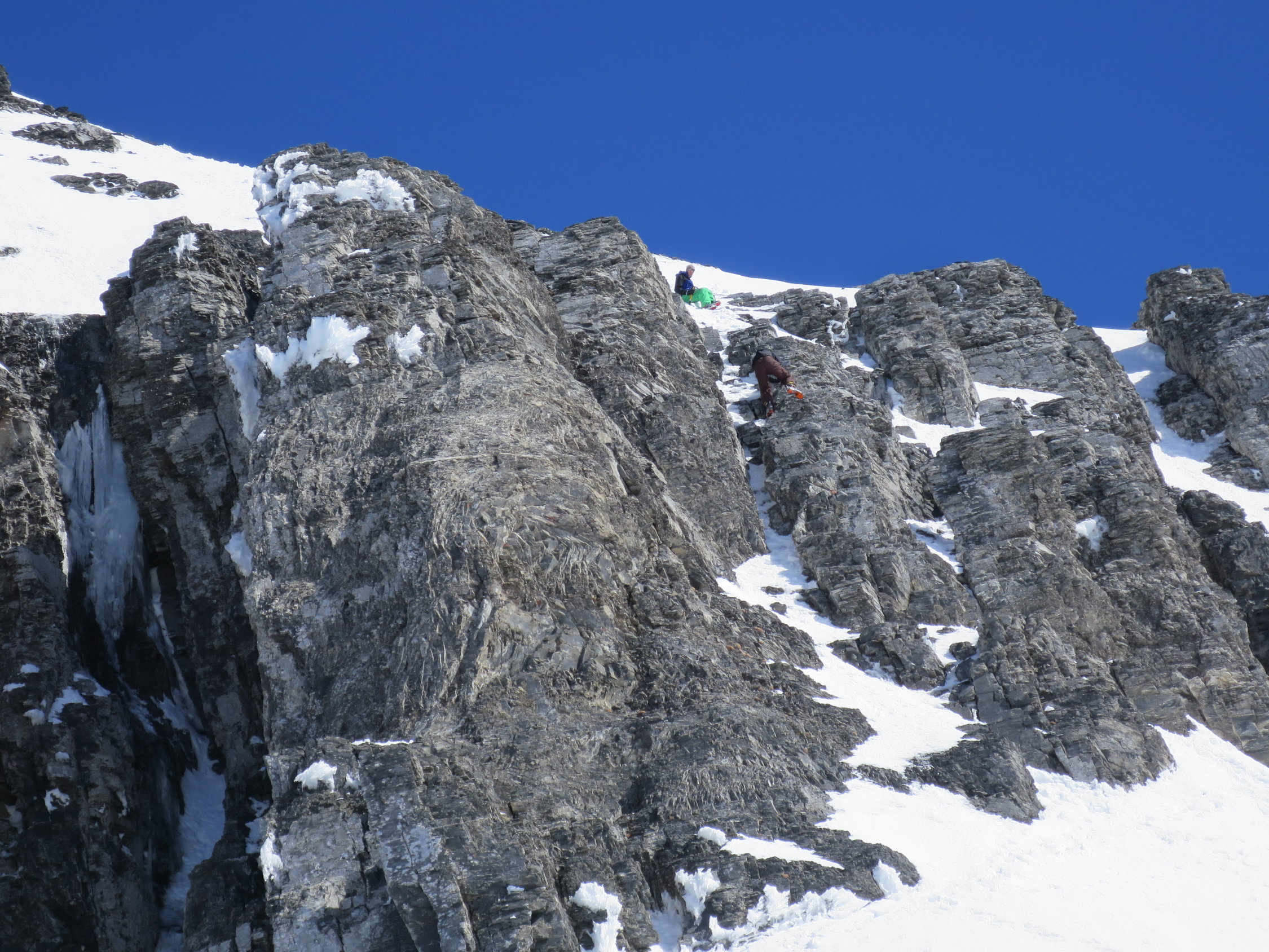 Um 05. 45 Uhr bei Schwandi(Oberhalb Färnigen) gestartet. Skis müssen ca 15 Min. der Sustenstrasse entlang getragen werden. Bei der Gorezmettlen Brücke durch die Chlialp nach Wissgand. Wir wählten die Route via Rossplangg ins Tal von Juzfad. Heute ein unschöner Aufstieg auf gefrorenem, verfahrenem Schnee zwischen Lawinenkegeln durch. Dann beste Verhältnisse (hart aber griffig) über den Rossfirn bis zum Skidepot des Chli Spannort (Wintertürmli). Um das Chli Spannort herum in die Mulde abgefahren. (dort liegt noch viel Pulverschnee) Kurzer Aufstieg zum Spannortjoch, Skidepot am Fusse des Gross Spannort eingerichtet. Trittspuren führten heute auf einer (mir) neuen Route zu der zweiten Felsbarriere. (Siehe Foto) Ziemlich steil und ausgesetzt das Ganze! In der kurzen Kletterpartie an einigen Stellen Wassereis. Gute Spuren führten zum Gipfel dankeschön den Machern! Zwei weitere Skibergsteiger am Gross Spannort getroffen, das wars dann schon. Kalter Wind am Gipfel, dafür grandiose Fernsicht. Abstieg zum Skidepot, von dort in die Mulde abgefahren, noch einmal angefellt und unter die Falkentürme aufgestiegen. In der Abfahrt vom Chli Spannort über den Rossfirn, Juzfad und Rossplangg bis ins Chlialptal herrlicher Sulzschnee.