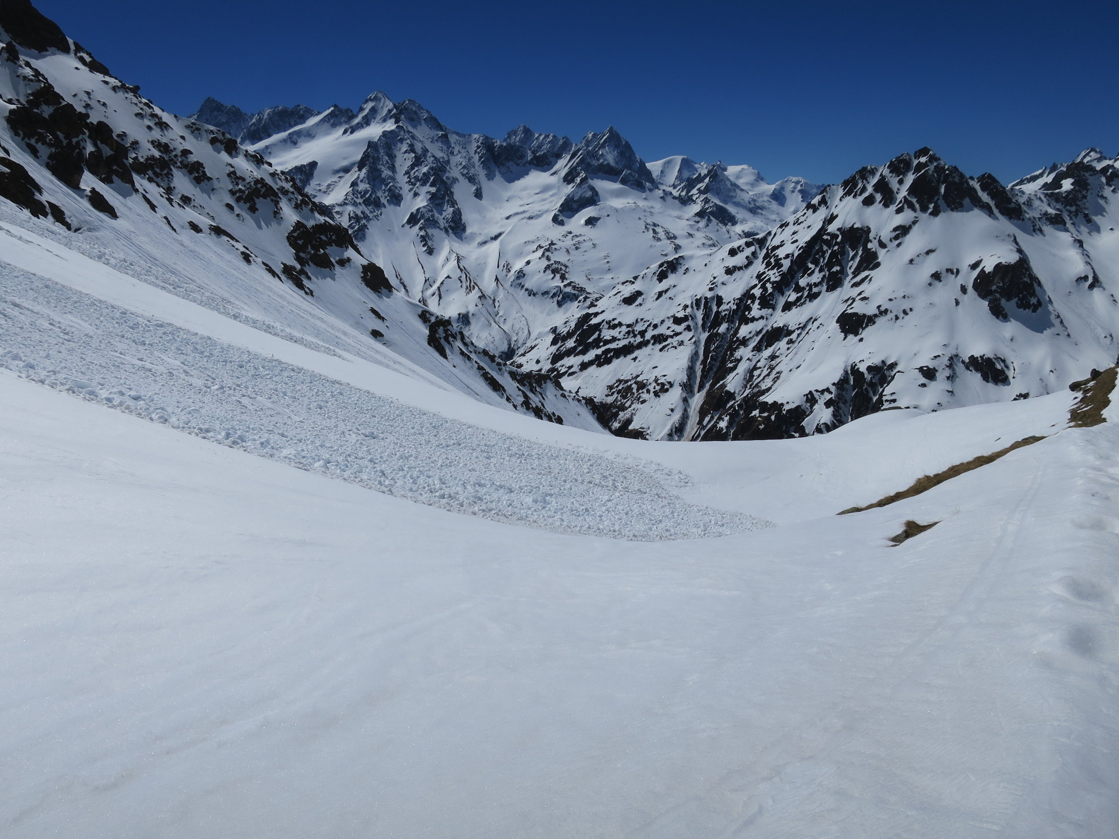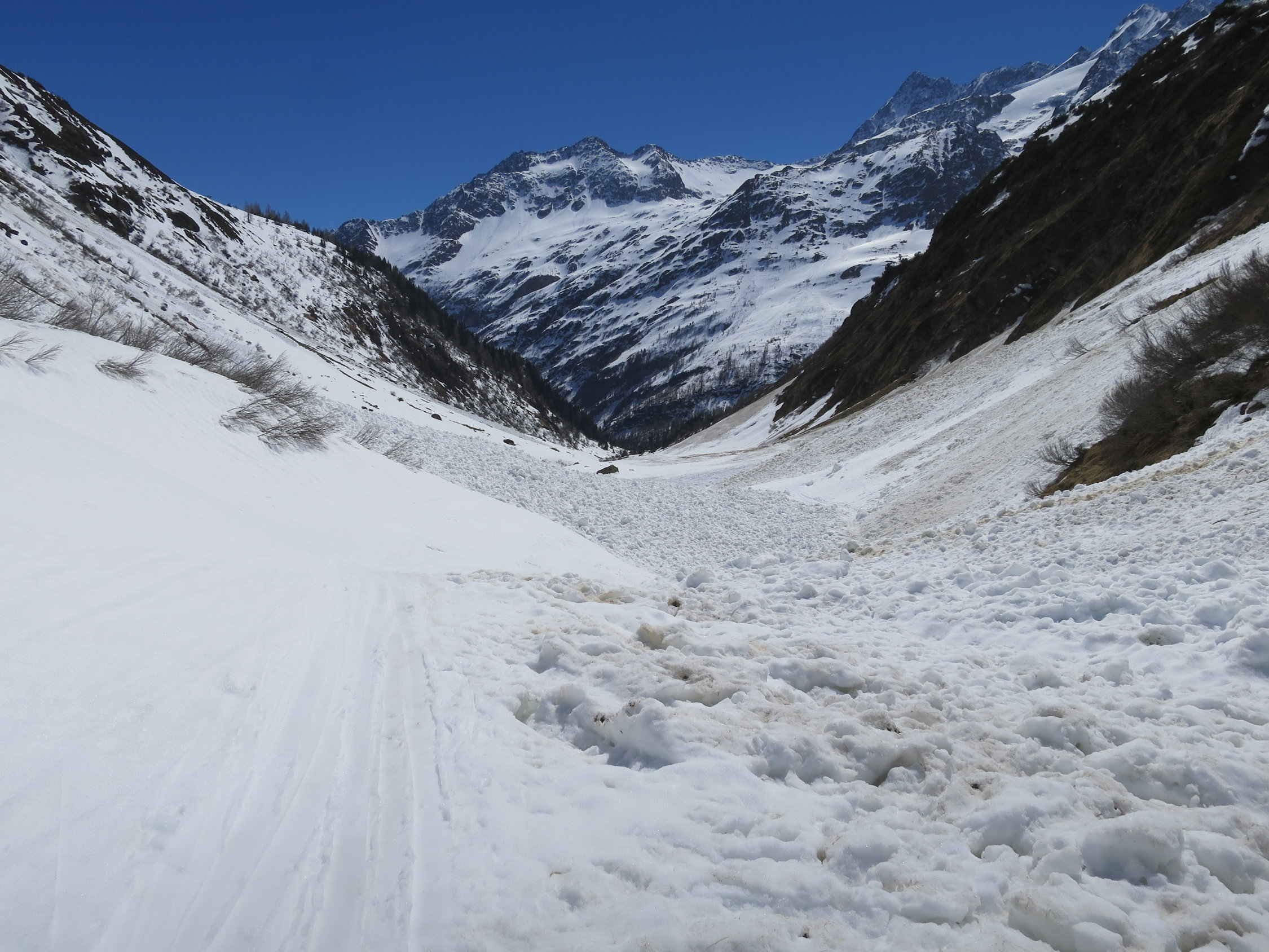 Unzählige Lawinenkegel in der Chlialp und im Juzfad.