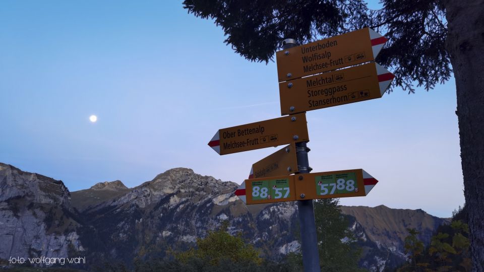 Vom grossen Parkplatz unmittelbar links der Talstation Melchtal Stöckalp auf 1’071m (im Sommer kostenlos, im Winter 5.-- / Tag), geht man durch ein Drehgatter richtung Osten und folgt den Wegspuren. Diese führen über den Cheselenbach, am Kraftwerk Hugschwendi vorbei, auf einen Feldweg richtung Hugschwendi, wo ein spärlich markierter Pfad links vom Bettenalpbach, hoch nach Unterboden zu P1461 führt. Die Wegfindung nachts mit Stirnlampe im nassen und rutschigen Gelände, ist aufgrund der spärlichen und verwitterten Markierungen nicht einfach. Von P 1461 über P1455 führt ein gut gehbarer und weiss-rot-weiss markierter Bergweg hoch zur Wolfisalp auf 1’942m. Ab hier geht es weglos, erst über Gras dann über Karst- und Blockgelände hoch richtung P2535, dem Sattel zwischen Barglen und Rotsandnollen. Ab etwa 2’000m ist das Blockgelände schneebedeckt und steigt an der Nord-Ostflanke des Barglen steil an. Ab 2’400m quert man stets ansteigend die eingeschneite Nordflanke in z.T. knietiefem Schnee, oft mit eisiger Unterlage. Gutes Bein- und VOmax Training. :-)