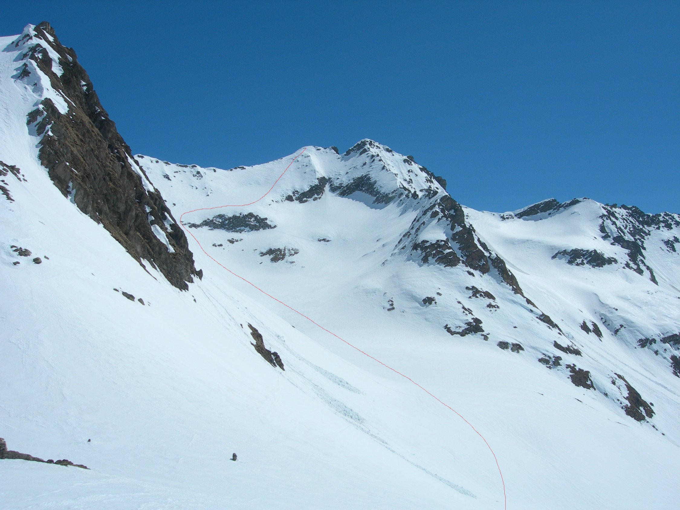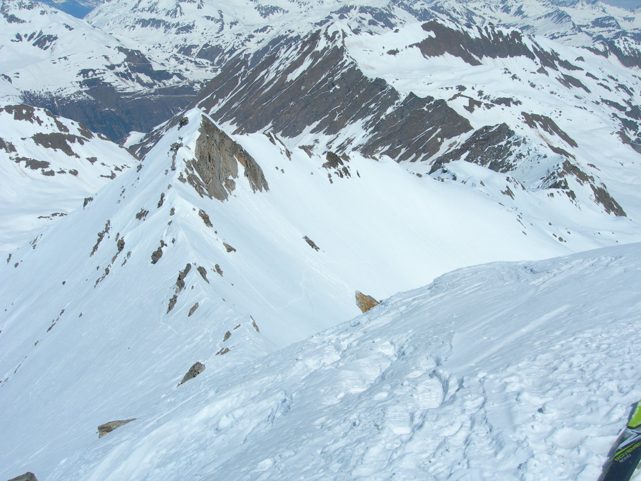 Bevor Cap Cristallina gibt es eine grose Nassschneelawine. Die habe ich umgangen und bin dan zur Hutte hochgestiegen (Foto).