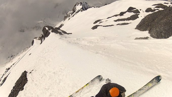 Oberste 100-150m (40-45°) entlang des Grates zur Nordwand trotz später Abfahrt (auf Anraten 15 Uhr) noch hart und dabei recht exponiert. Übergang vom obersten Schneefeld in die große Rinne der oberen Westflanke durch sonnengeschützte Ausrichtung eisig (Passage 45-50°, exponiert). Große Rinne der Westwand (45°) passabel aufgefirnt und gut fahrbar. Entlang des Hängegletschers guter Firn. In der Querung unter dem Serac schauen im Aufstieg teilweise Felsen durch. Abfahrt mit Ski war aber oberhalb bestens möglich. Unterhalb des Seracs ist der Hang (40°) durch Lawinenreste nur mäßig lohnend. Am Rotstock kurze Felsaufschwünge die noch gut im Schnee umgangen werden können.