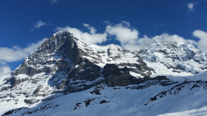 Der Hängegletscher der Westflanke war in den letzten Tagen ruhig. Bei Eisschlag allerdings kaum Ausweichmöglichkeiten.