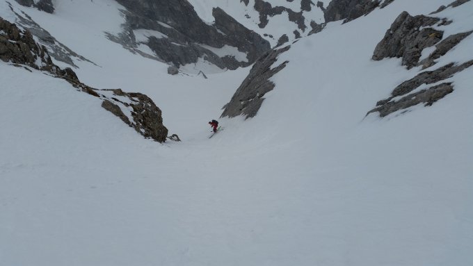 Gesamte Blodigrinne ohne Skie abzuschnallen aufgestiegen.