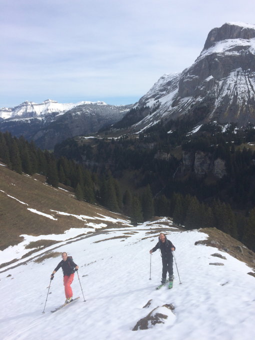 Aufstieg in schöner Spur und ohne Schwierigkeiten zum Gipfel. Insgesamt ab Gross Gade noch viel Schnee. Die Abfahrt war dann für Ende April sehr schön in einer etwa 15 cm dicken Pulverschneeschicht die sich wirklich toll fahren liess. Unten etwas schwerer, aber immer noch hervorragend. Ab Gross Gade eher zu Fuss bis zum Sahli zurück. Oder einer holt das Auto und die anderen chillen in der Sonne :-)