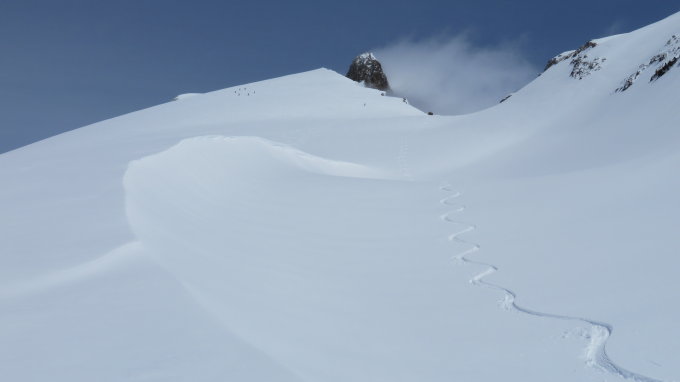 Vorsicht bei der Querung am Bockberg, hier ist noch Potential für Nasschneerutsche vorhanden. Ab Sustenlimi bis Gipfel stürmischer Westwind mit grossen Schneeverfrachtungen