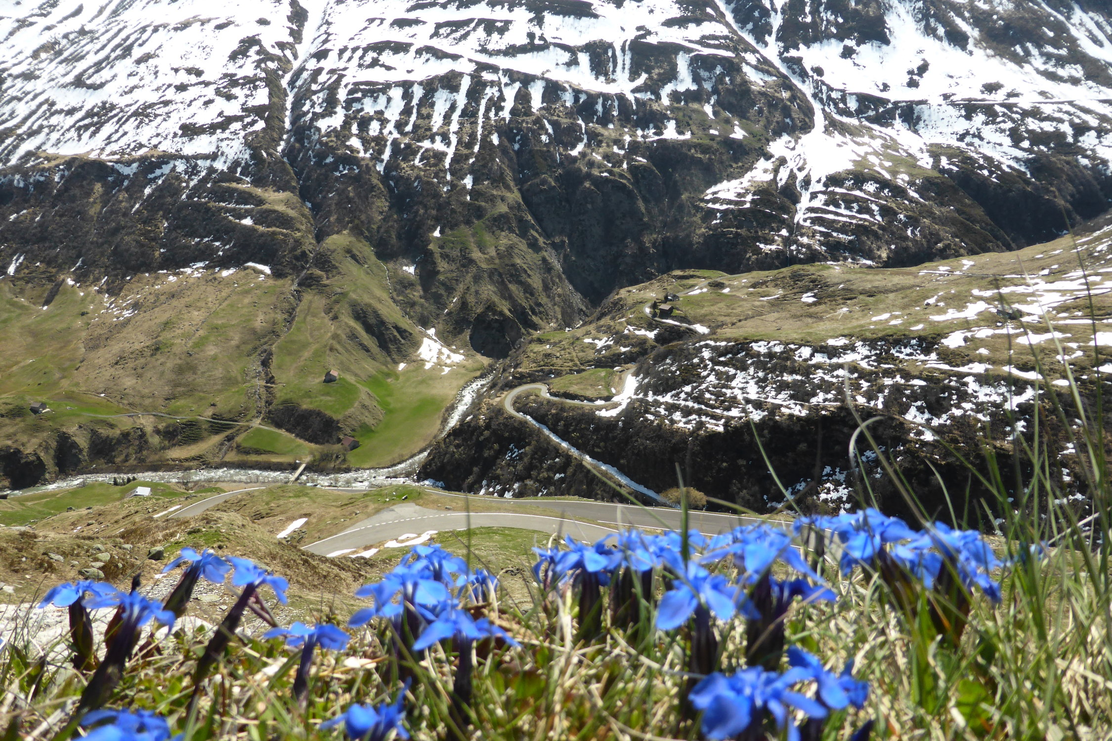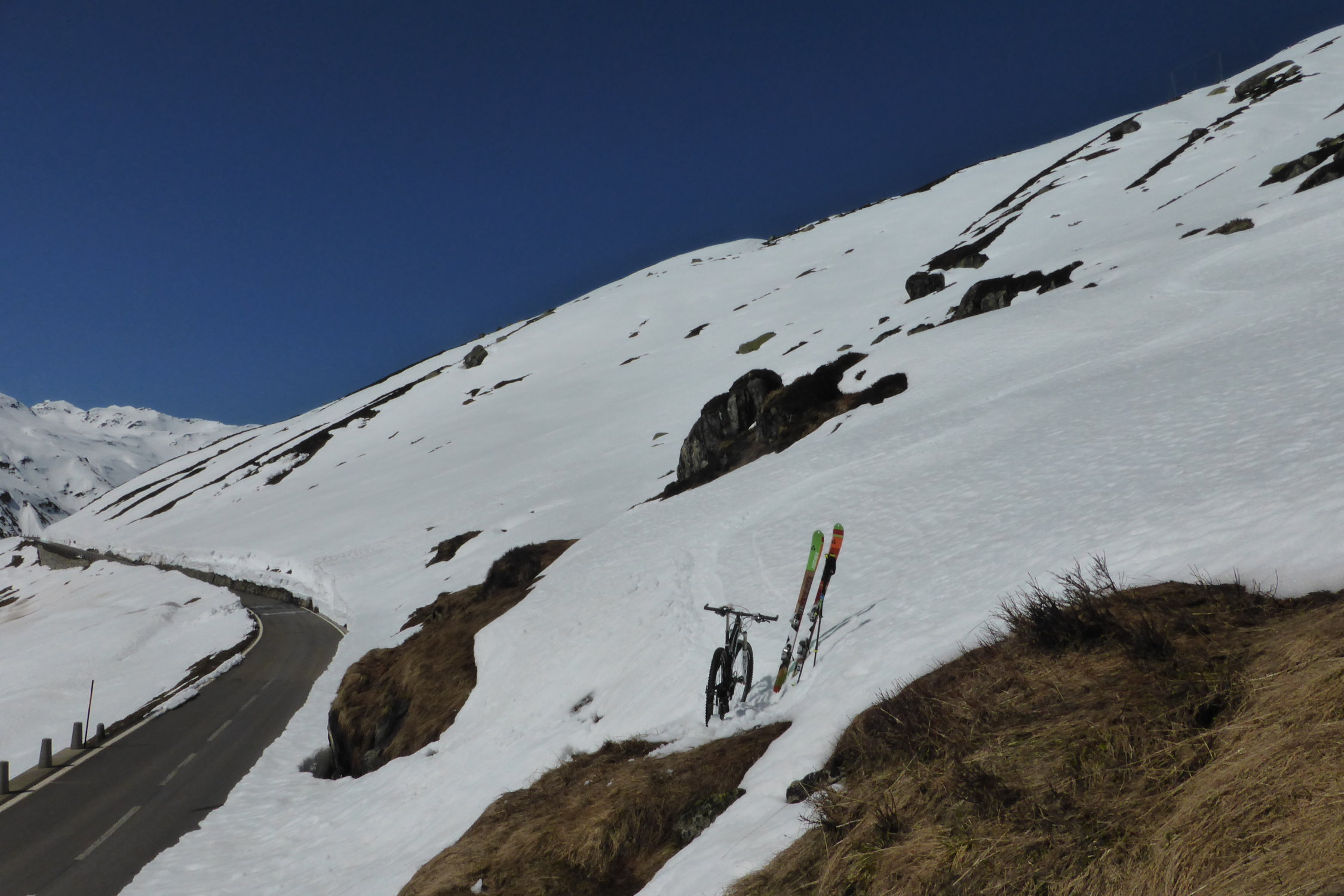 Start mit dem Bike bei der Barriere Realp um 4.45h ...auf der trockenen Passstrasse bis Tiefenbach.