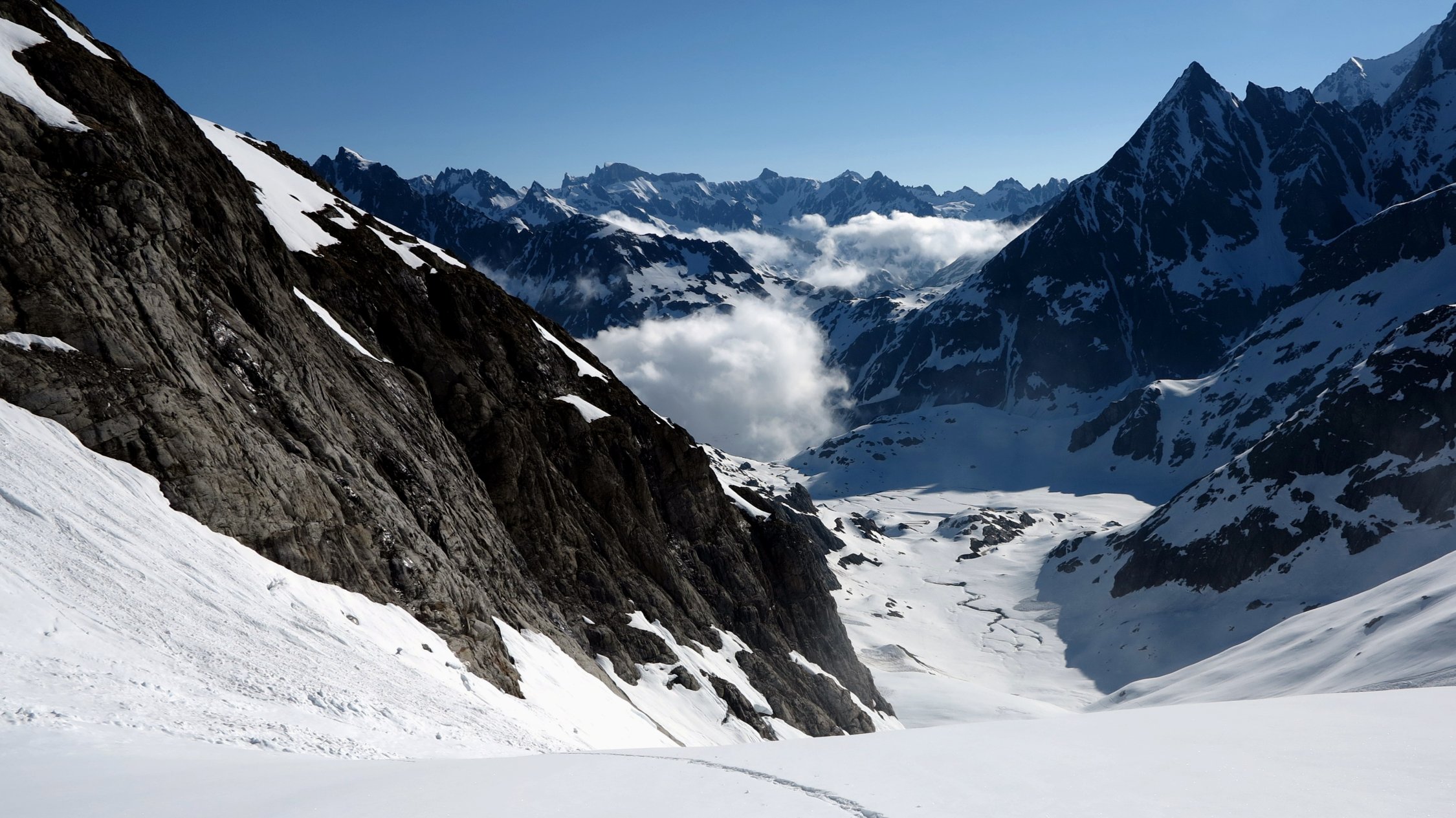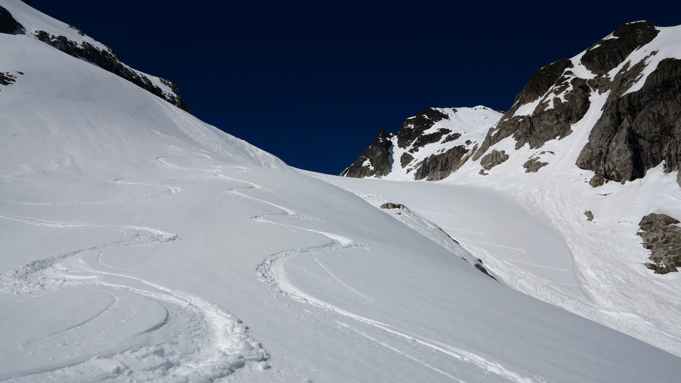 Der Schnee war schon beim Aufstieg nicht durchgefroren, trotzdem gut zu gehen. Schlüsselstelle durchgehend mit Schnee bedeckt. Bei der Abfahrt um 10.30 Uhr vom Gipfel weg seidenweicher Sulz, unten am Gletscher tiefer Sulz, aber da er so feucht war, sehr gut zu drehen. Viel besser als erwartet. Nur eine Handvoll Leute unterwegs.