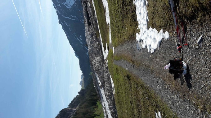 Beim See dann entweder im aufstiegssinn links laufen (Lawine übersteigen und allenfalls Steinschlag) oder Ski tragen auf der rechten Seeseite 10Minuten.