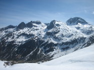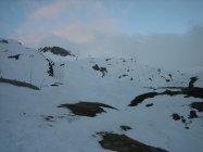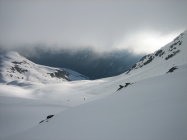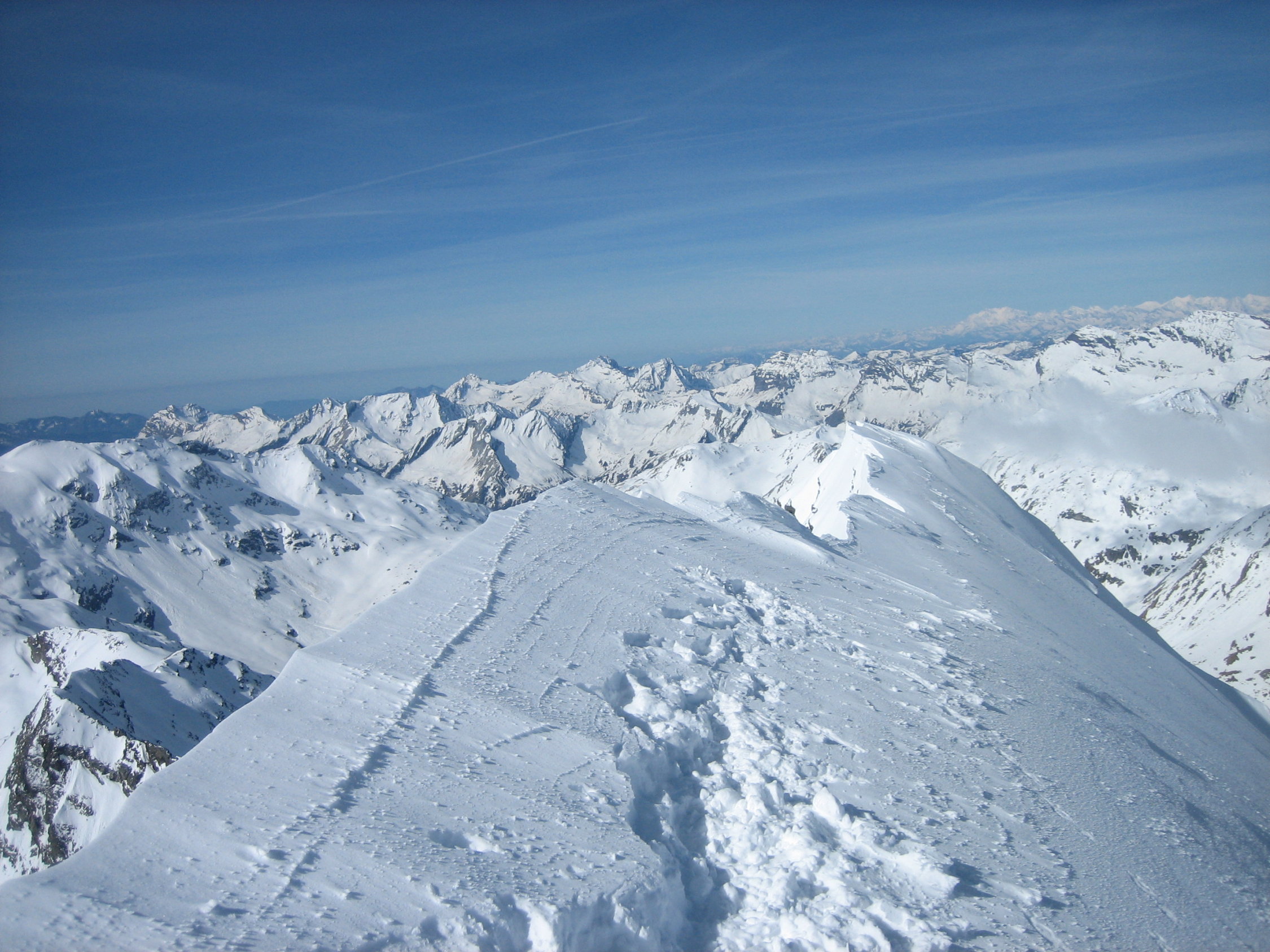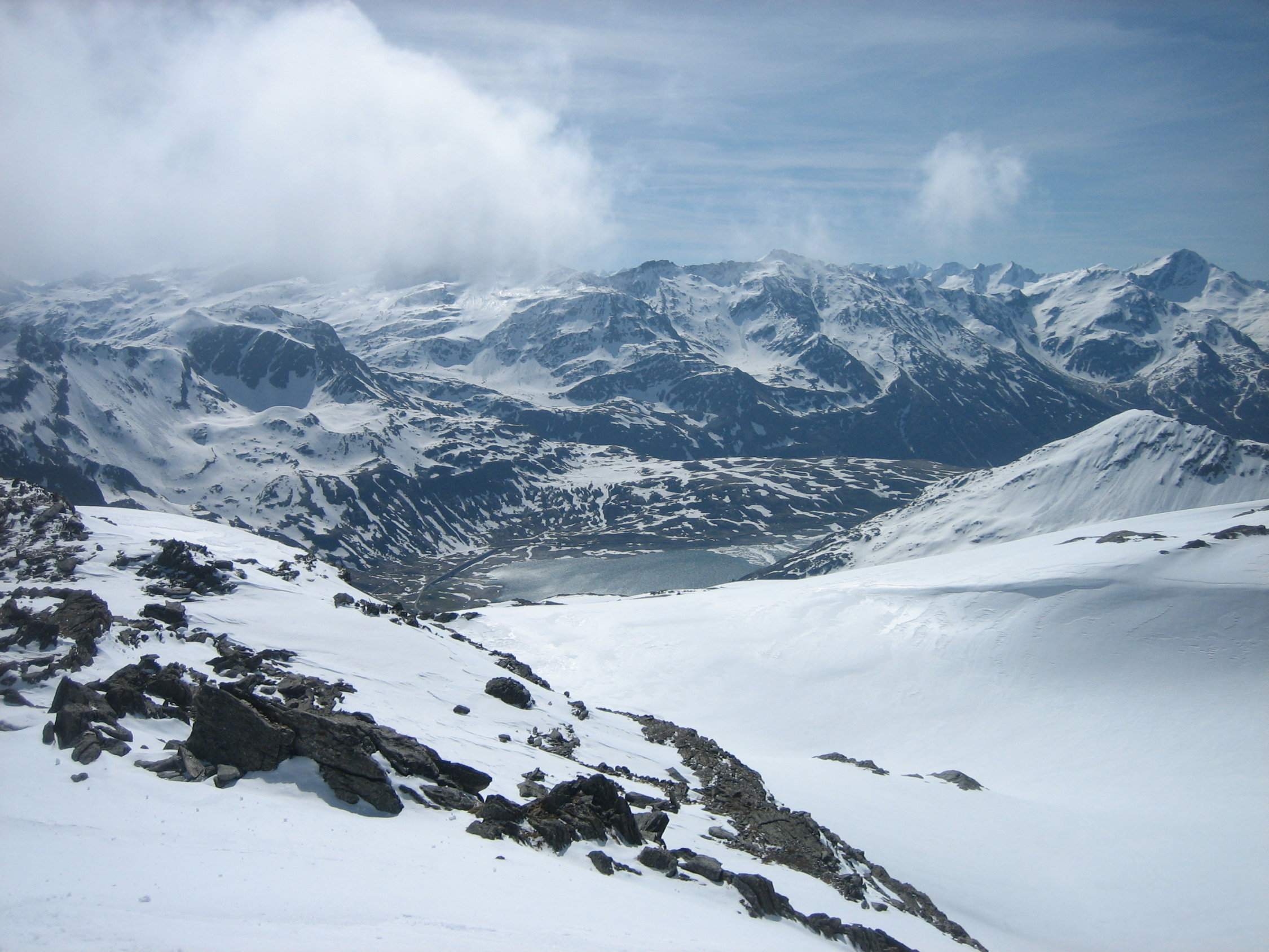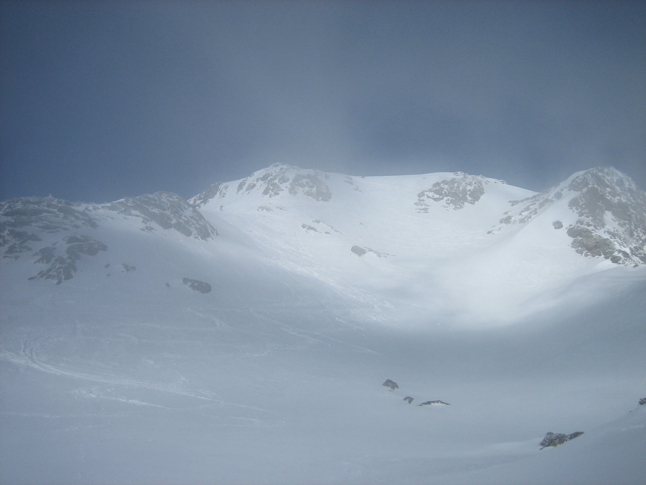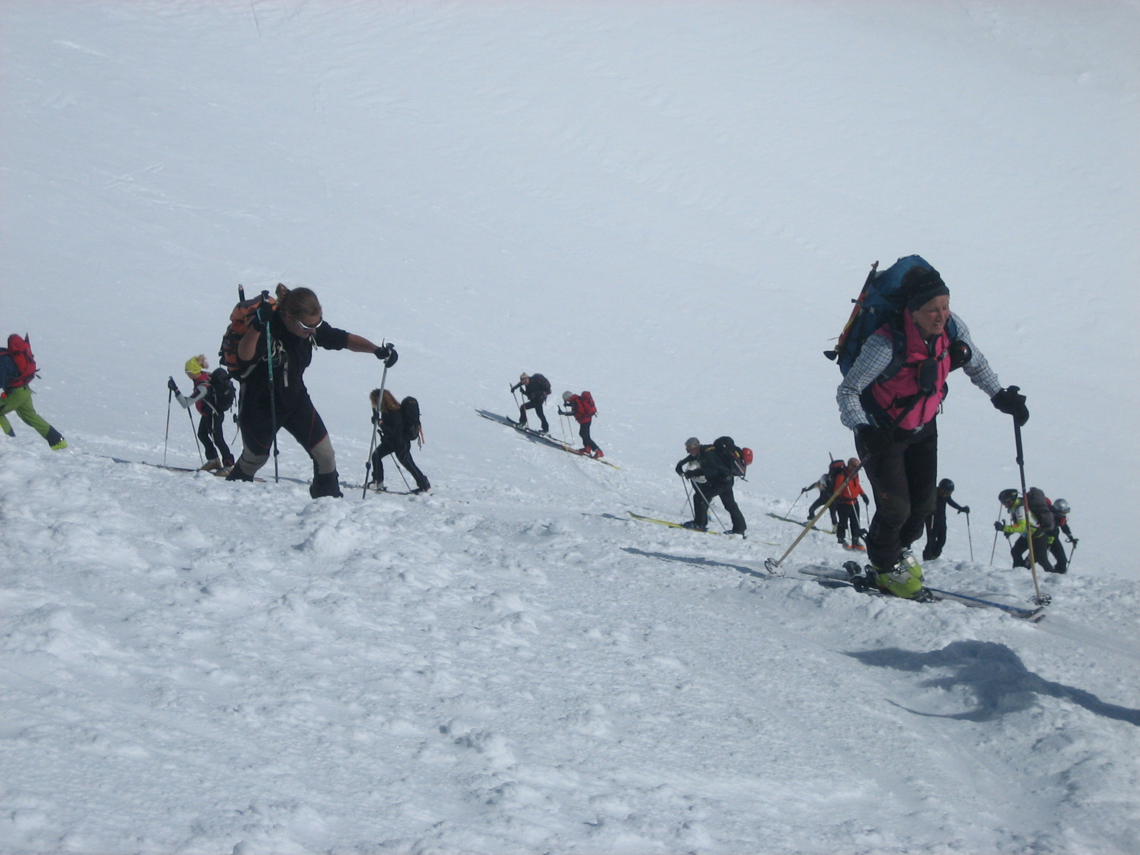 Start ab Berghaus 06:00 Uhr hart gepresster Schnee auch neben der Aufstiegsspur tragfähig. Auf dem Gipfel 09:30 Uhr inkl. Pause. Abfahrt ab Skidepot ca. 10:15 Uhr, oben hart gepresster und griffiger Schnee, in der Mitte Sonnenhänge bereits aufgeweicht, unten nasser schwerer Schnee.