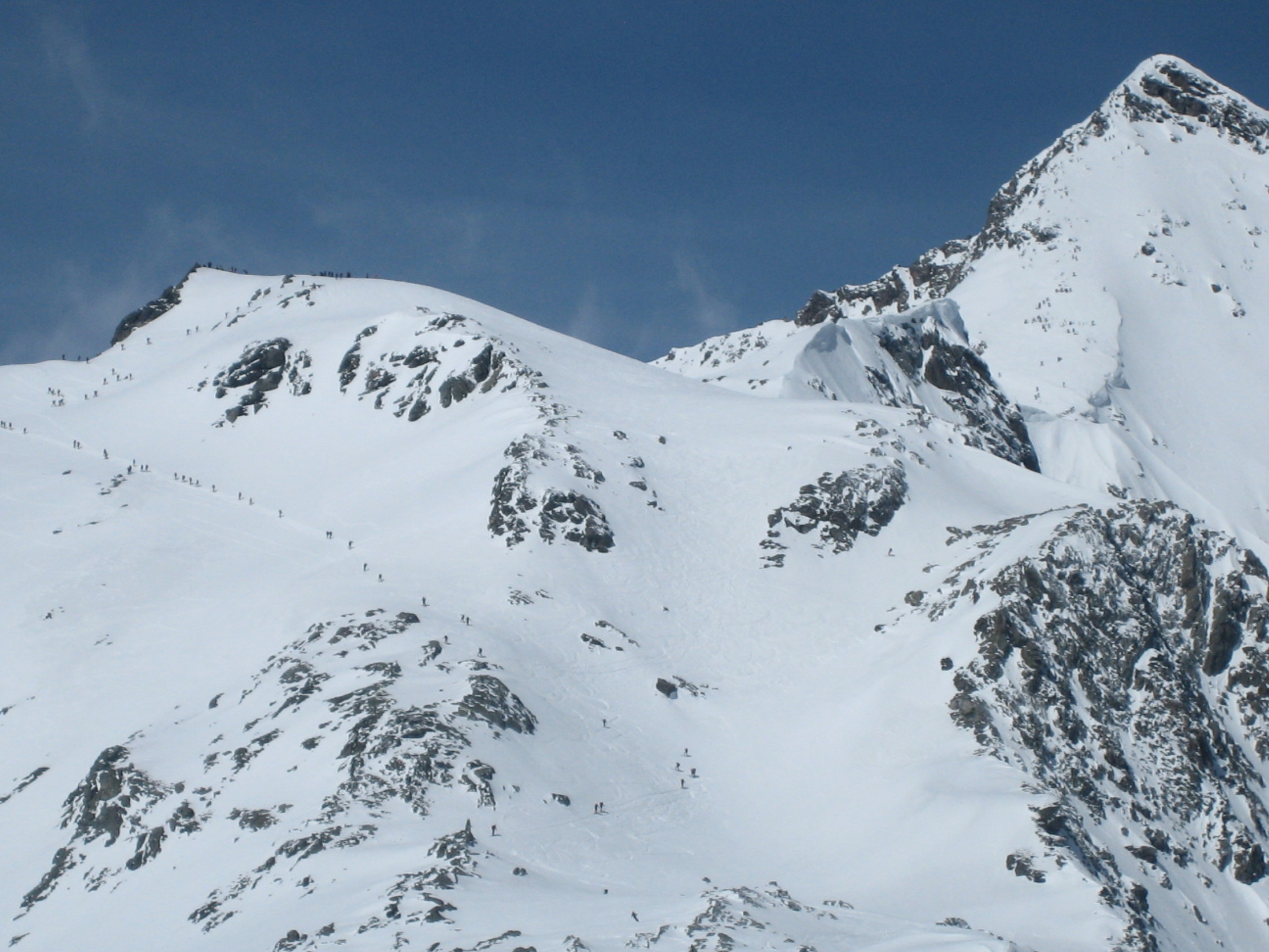 Gruppengrösse 1 Person ist leicht untertrieben. Insgesamt waren bestimmt 200 - 300 Leute unterwegs vor allem von Monte Spluga kamen unsere italienischen Tourengänger und Tourengängerinnen gleich scharenweise... ohne Ende!