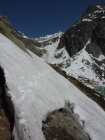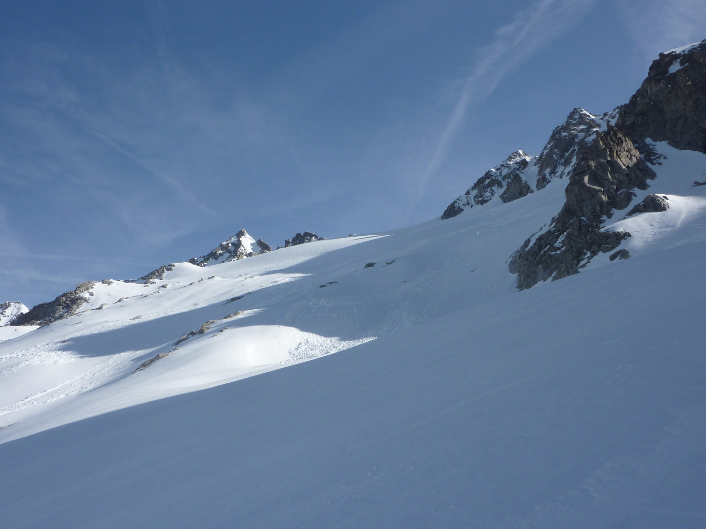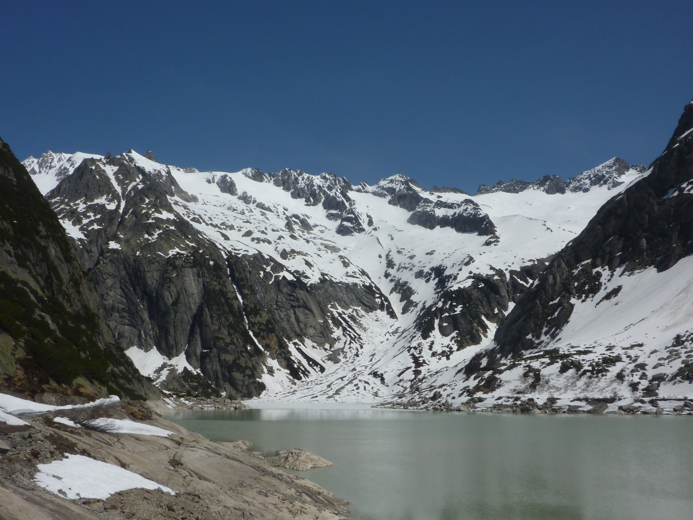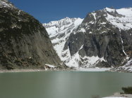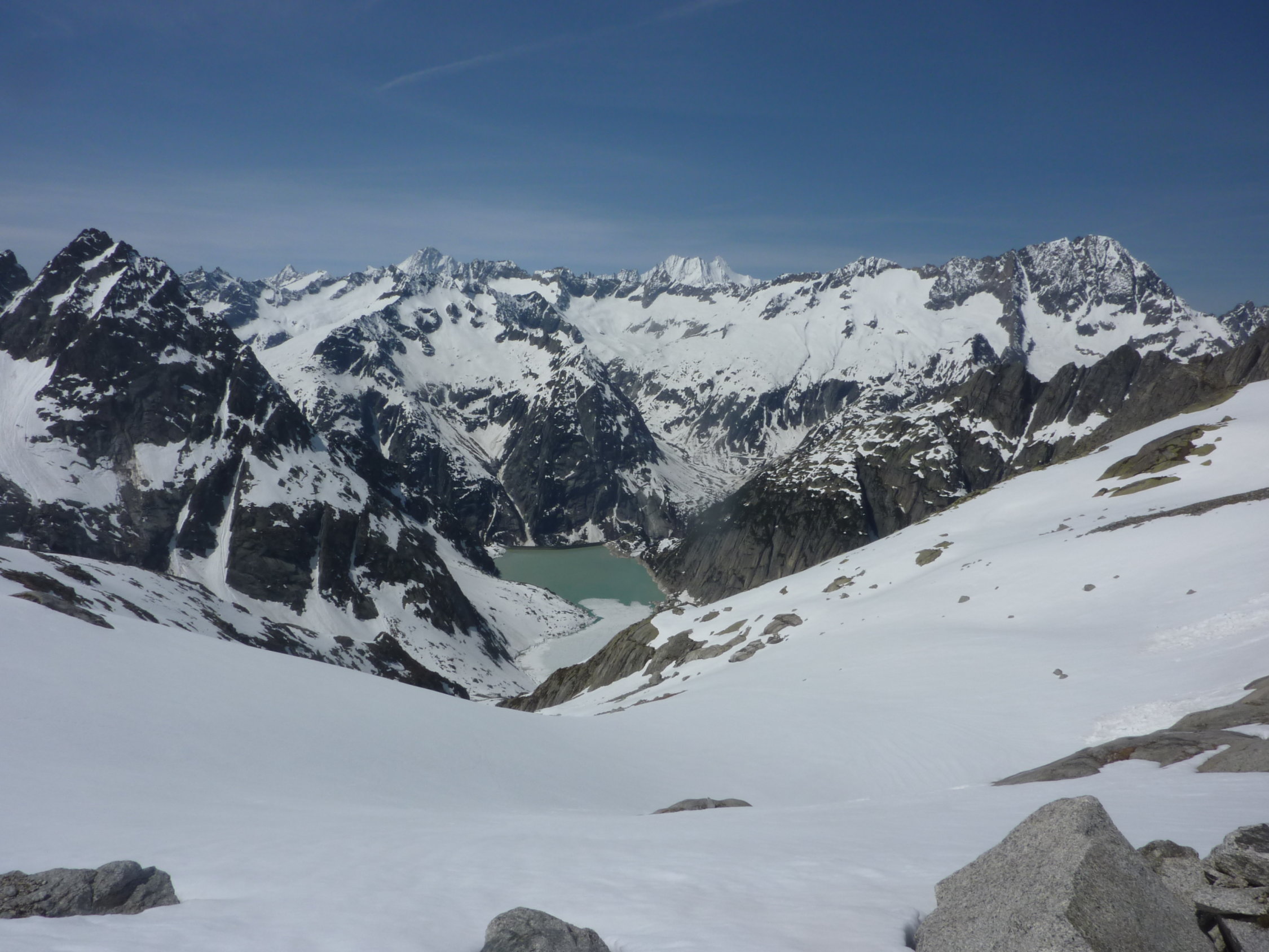 Wenige Schneeresten auf dem Sommerweg bis zur Staumauer, teilweise feuchte Platten. Dem Seeufer entlang vor allem im hinteren Teil einige (wie so oft in dieser Jahreszeit) heikle und ausgesetzte Passagen. Etwas Lawinenschnee im Aufstieg, kann aber praktisch immer umgangen werden. Geniale Verhältnisse und unverspurte Hänge in der Abfahrt auf dem Alpligletscher und entlang dem Alplibach bis hinunter zum See. (oberste Höhenmeter Pulverschnee mit leichtem Deckel (Wind), dann gleichmässige Auflage mit Pulverschnee und praktisch nahtloser Uebergang in herrlichen Firn und zum Schluss tragendem Sulz bis zum See.