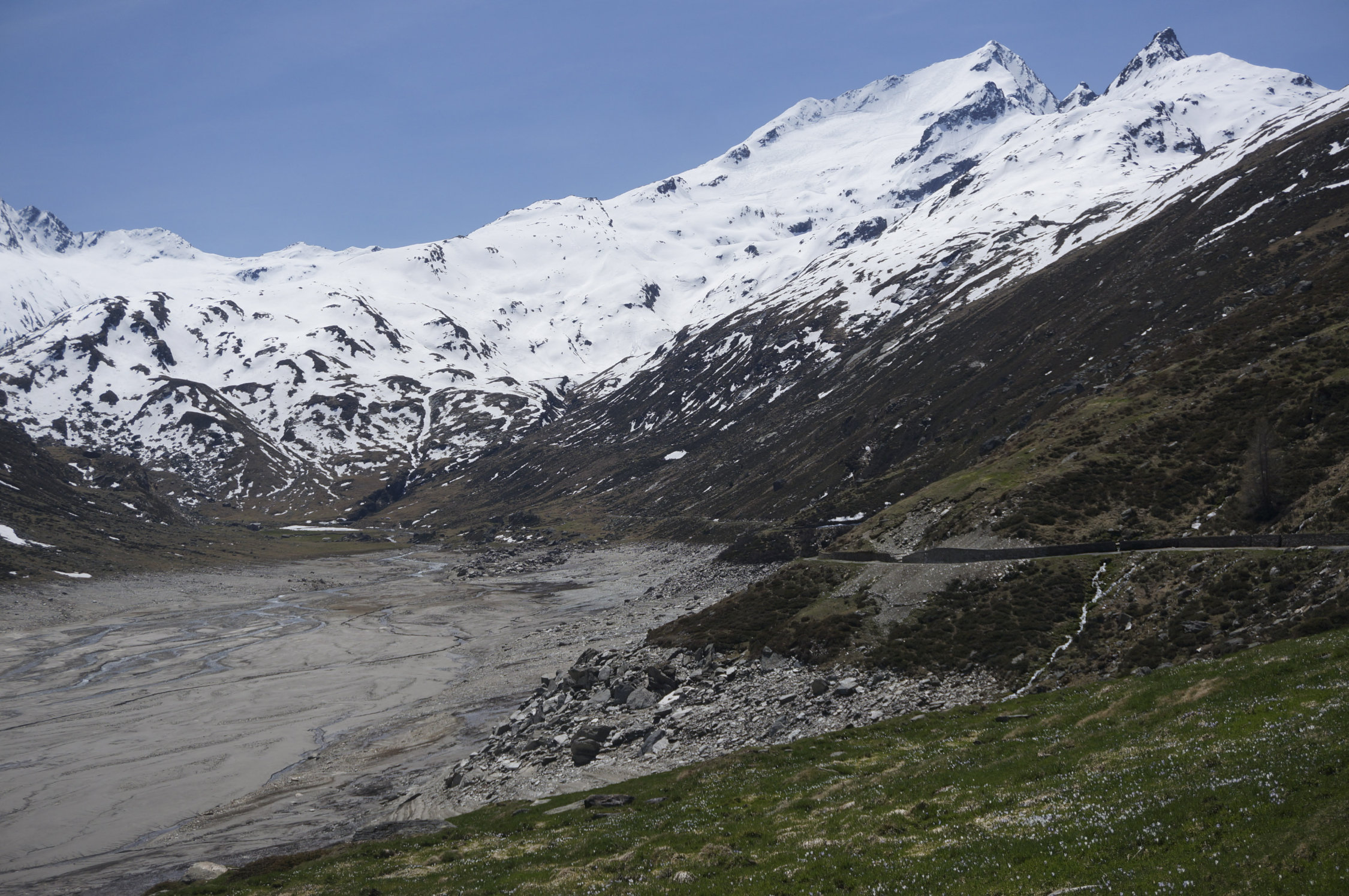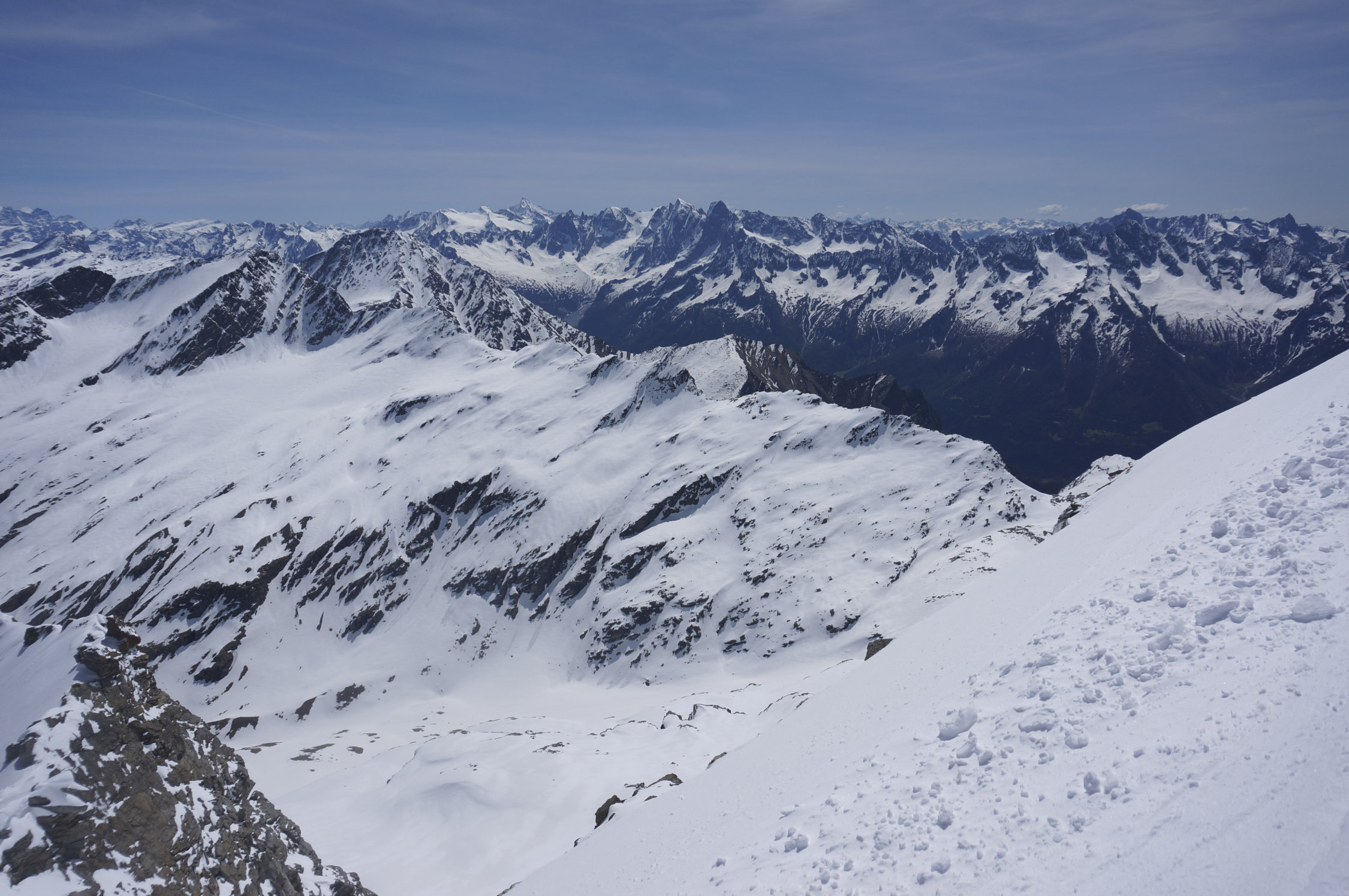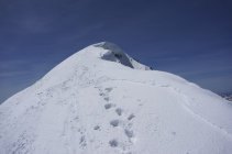 Die Radfahr-Strecke ist gut fahrbar und schneefrei. Dann noch ca.100Hm tragen, bis zur ersten schneegefüllten Rinne. Wie oben beschrieben an den Punkten 2341 und 2509 vorbei und erst bei wetwa 2600 nach rechts (W) auf den Gletscher wechseln.