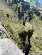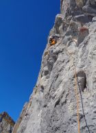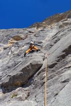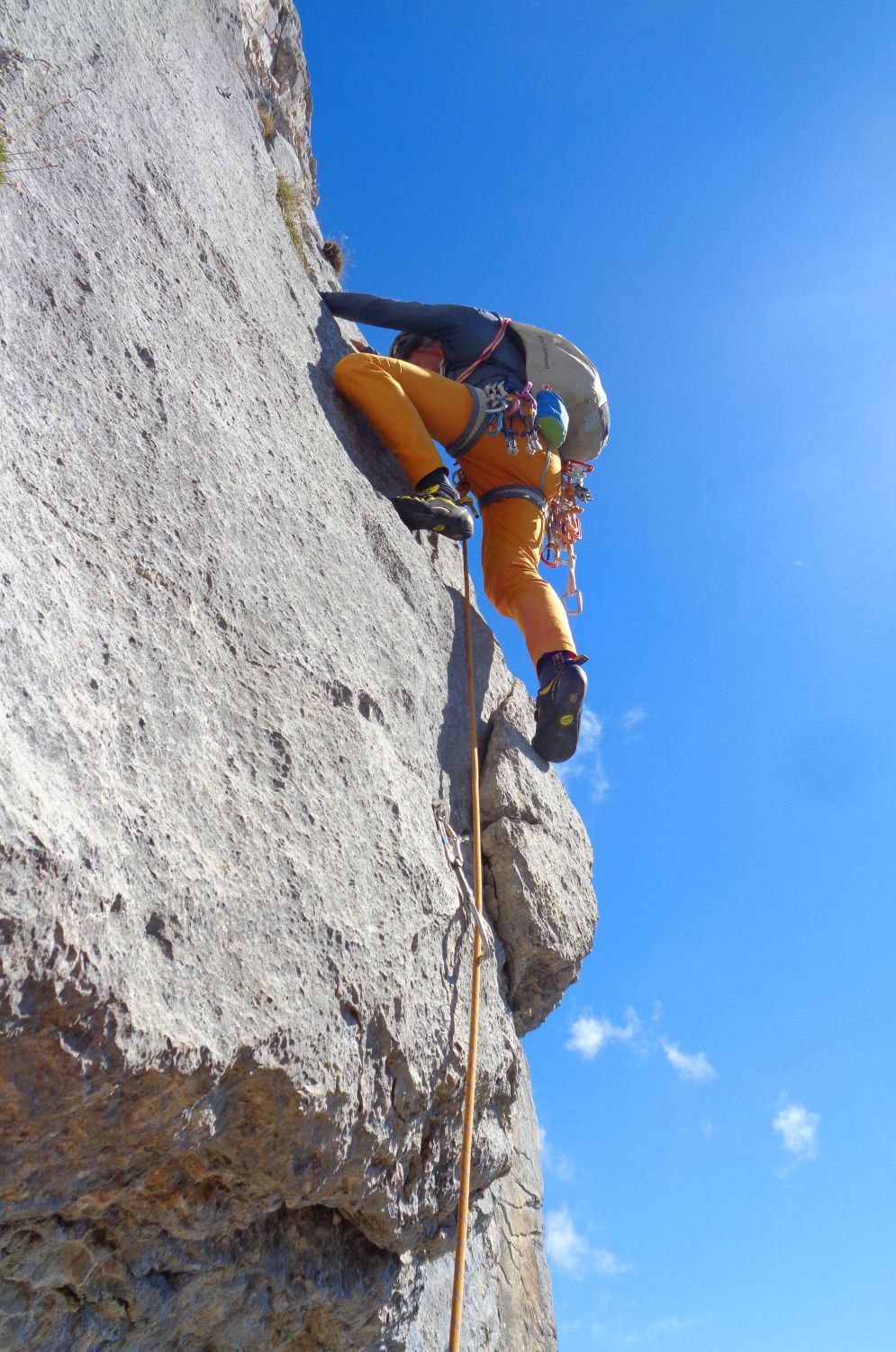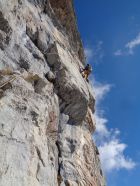 SL4 (35 m, 6a): Gleich 2 m über dem Stand ist ein Schlitz (Cam), der 1. Bh kommt erst 3 m später. Kletterei ist sehr schön, griffig athletisch, einmal mit einem Dynamo, wenn man nicht 2 m groß ist.