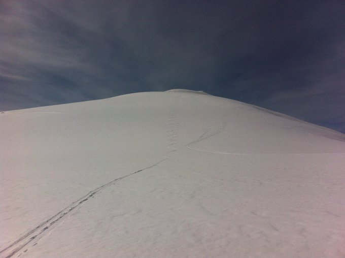 Aufstieg zum Col de la Division evt. mit Harscheisen. Im Col selber hat es Ketten. Guter Trittschnee. Die anschliessende Abfahrt zur Hütte ist durch Nassschneerutsche und Spuren bereits etwas ruppig. Unbedingt am Vormittag machen. Kreuz oberhalb der Hütte wird bald linker Hand (in Richtung Abfahrt) sichtbar.