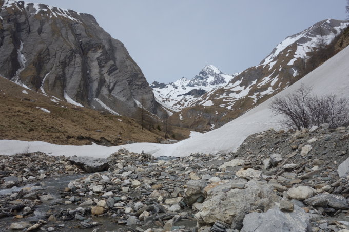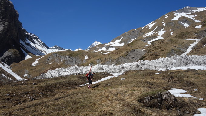 einige wenige ältere und neuere Naßschneelawinen im Zustieg zur Stüdlhütte.