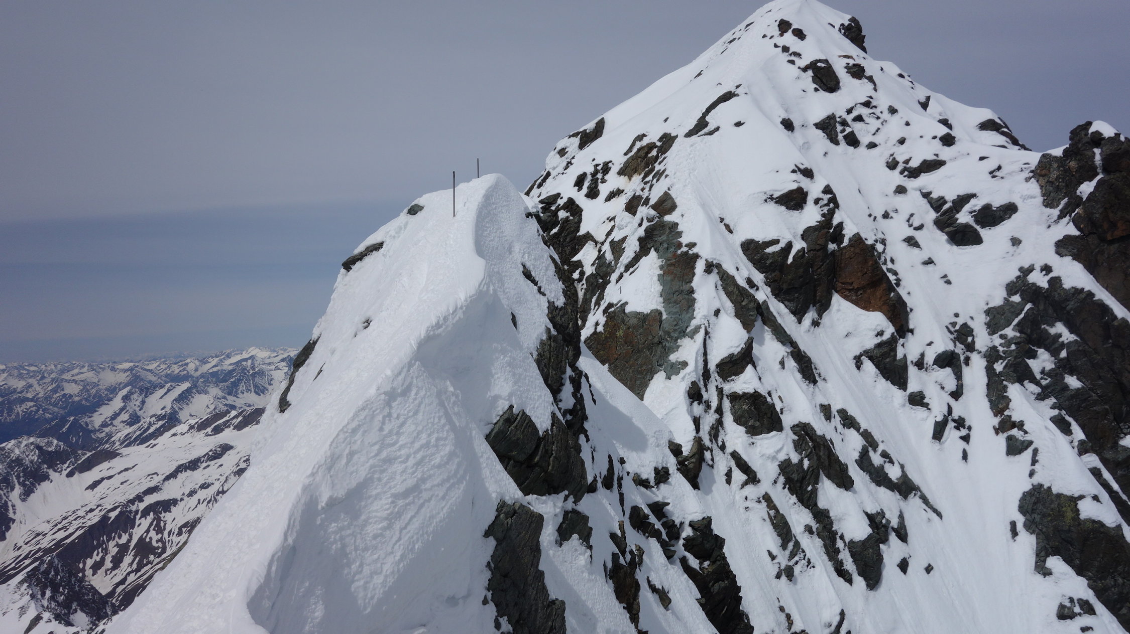 Vom Lucknerhaus bis zur Lucknerhütte Ski getragen. Am 12.5.morgens Schneedecke perfekt durchgefroren. Wir haben Skidepot auf der Schulter unter der Adlersruhe am Beginn des versicherten Weges zur Adlersruhe gemacht. Der Direktausstieg vom oberen Ködnitzkees zum Glocknerleitl war aber auch noch gut machbar, allerdings eine kurze Stelle schon etwas dünn. Gipfelanstieg beste Verhältnisse, da durch viele Begehungen eingetrampelt. Glocknerscharte schmal, danach kurz am Fels bisschen hinlangen.