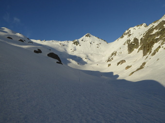 Der Aufstieg zur Vallettalücke war sehr angenehm und mit guter Spur versehen. Die Abfahrt konnte bei bestem Schnee gemacht werden griffig und weich.
