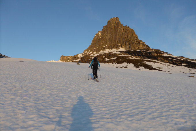 Vom Westgipfel P. 3023 durch die steile Ostrampe Sulz und vom Güfergletscher zum Güferhorn hart und wieder mit Harsteisen.
