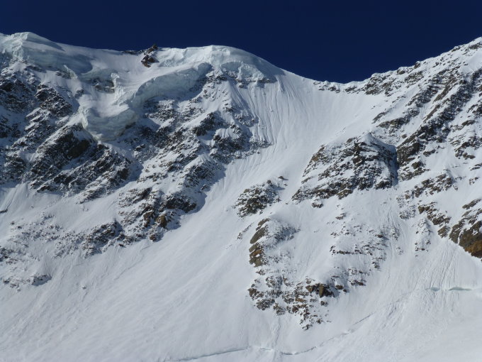 Traumverhältnisse in der gesamten Nordflanke (Wienerroute) des Fletschhorns. Konnte 2/3 der Wand sogar in Spitzkehren aufsteigen, weil Schnee so tief war. Dann Wechsel auf Steigeisen Nirgendwo Eiskontakt. Aufgrund des vielen Schnees ergaben sich dann perfekte Abfahrtsverhältnisse direkt vom Gipfel. Auffahrt mit Auto zum Rossboden aufgrund von großen Felsbrocken noch nicht möglich. Das heißt man muss von ganz unten starten (ca. 2400 hm ). Schnee beginnt direkt hinter den Hütten des Rossbodens.