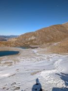 Rund um die Hütte liegt nur wenig Schnee, aber noch genug zum Schmelzen und Kochen.