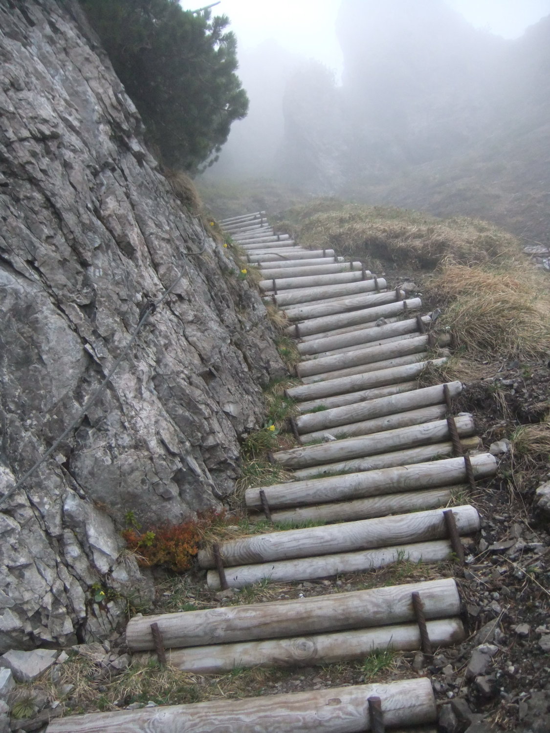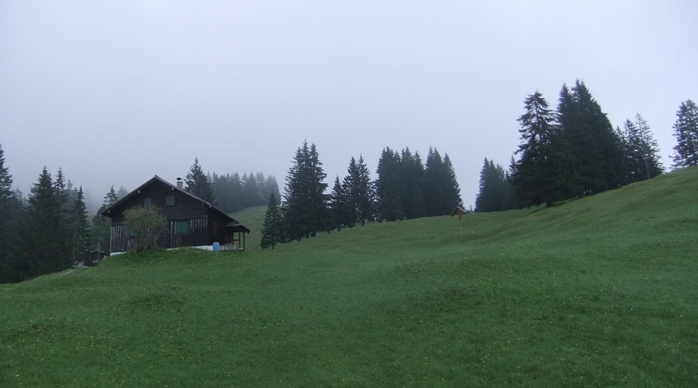 Bis 12:30 hielt sich Hochnebel und Wolken in den oberen Regionen. Nur sporadisch mal kurze Blickfenster hinab. Ab 13:00 klarte es auf dem Weg zum Fraßen auf.