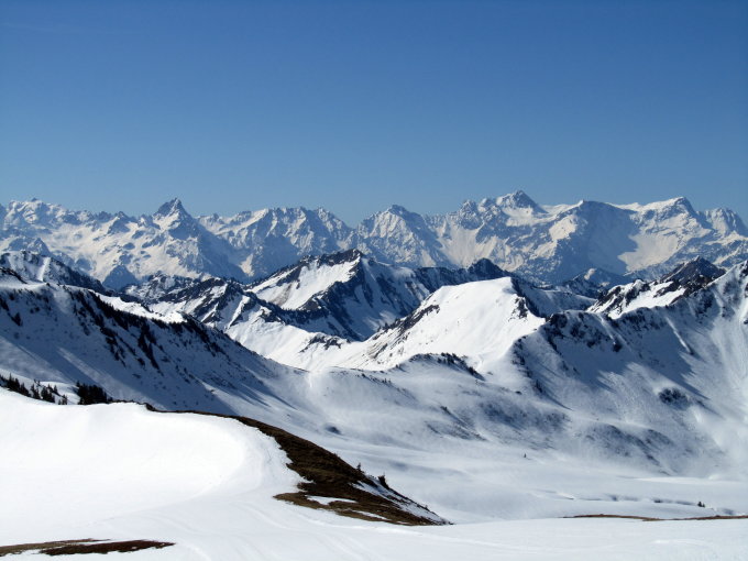 Wolkenlos und bester Firn. Kein Pistenbetrieb.